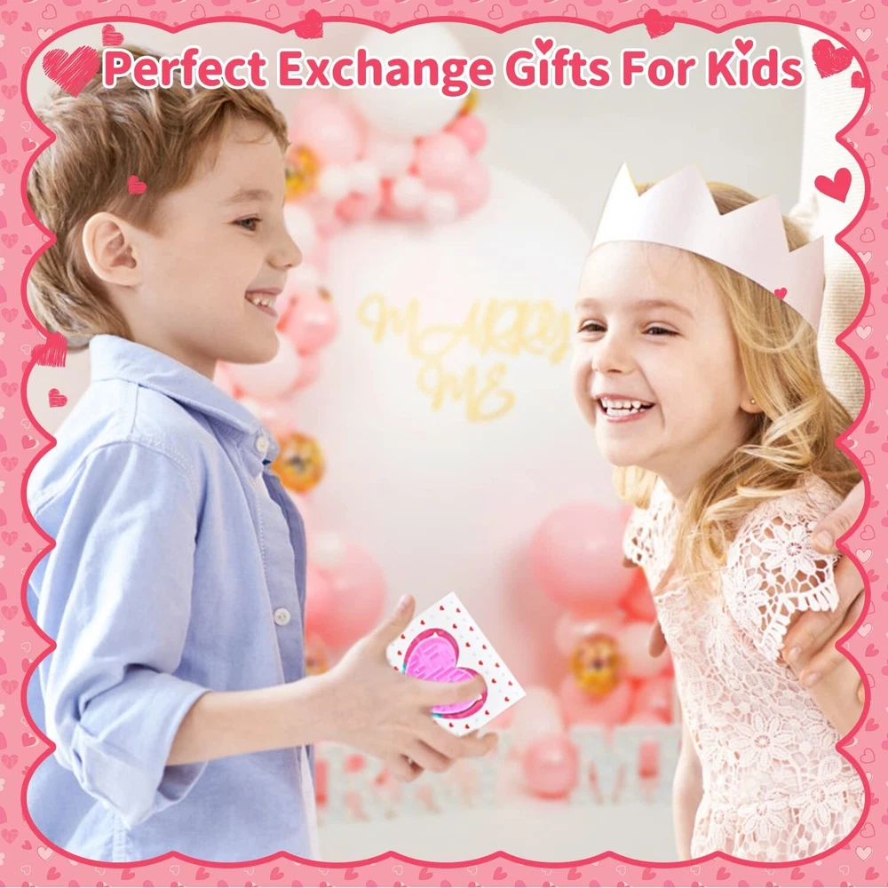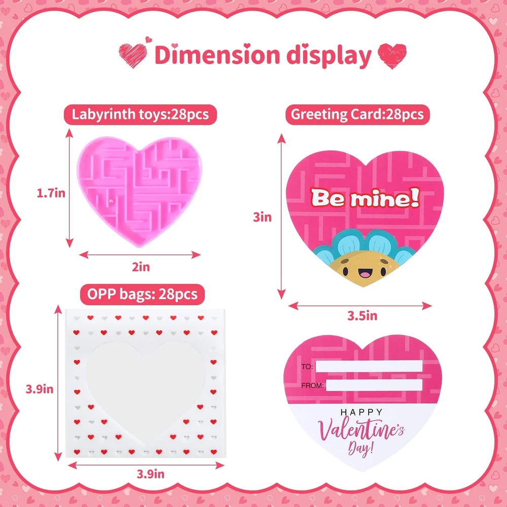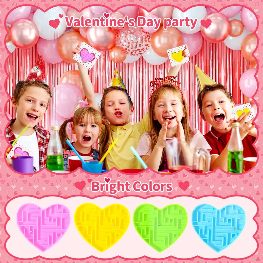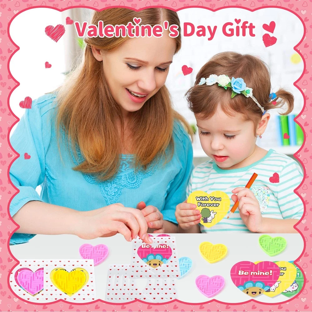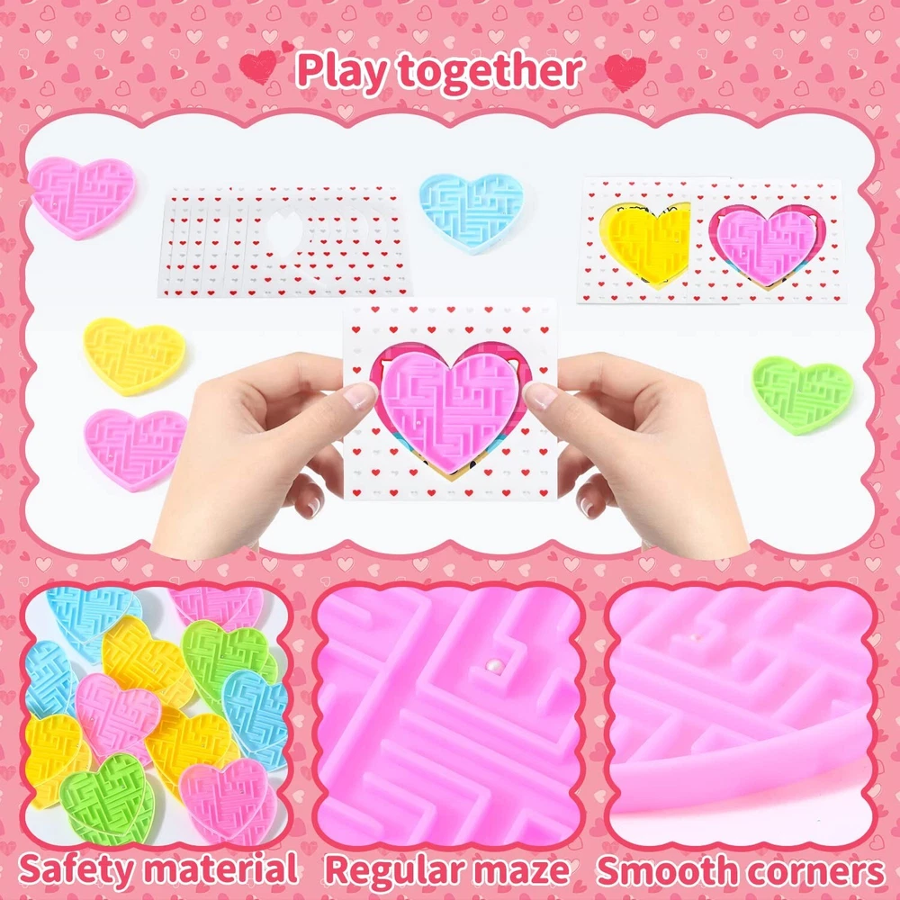 28Pcs Valentines Gifts for Kids, Novelty Heart Maze Puzzles With Valentines Cards for Kids Classroom, School Gifts Party Favors Carnival Prize Goodies Bag Fillers Pinata Stuffers Toys Product Details Color: Blue, Pink, Green, Yellow Material: Plastic Brand: DOBKDTUYS Unit Count: 1.0 Count Theme: heart Item dimensions L x W x H: 2 x 2 x 0.25 inches Occasion: Valentine's Day Manufacturer: yiwushihezhiweiwanjuchang UPC: 768484439890 Age Range (Description): Kid Product Dimensions: 2 x 2 x 0.25 inches Item Weight: 7.6 ounces Country of Origin: China Manufacturer recommended age: 13 years and up Cute Design: Heart shape; Maze Puzzle Toys; 4 bright colors- blue,pink, green,yellow High Quality: Thick ABS plastic, firm, smooth, work well, portable, colorful Package included: 28pcs heart cards with cute sayings, 28pcs heart maze puzzle toys. Cute Cards: 4 designs, 4 colors-blue,pink, green,yellow; Printed "Happy valentine's day!""Be mine!""Love you""You're a cool friend!""With you forever" Occasions: Cute cards with heart maze toys, perfect as kids school classroom prizes, gifts for kids, cards for kids classroom, classroom prizes, exchange gifts, love notes, carnival prizes, party favors, kids treats, class events, goodie bags stuffers, classroom gifts for students, treasure box, pinata fillers, birthday party giveaways and etc,.