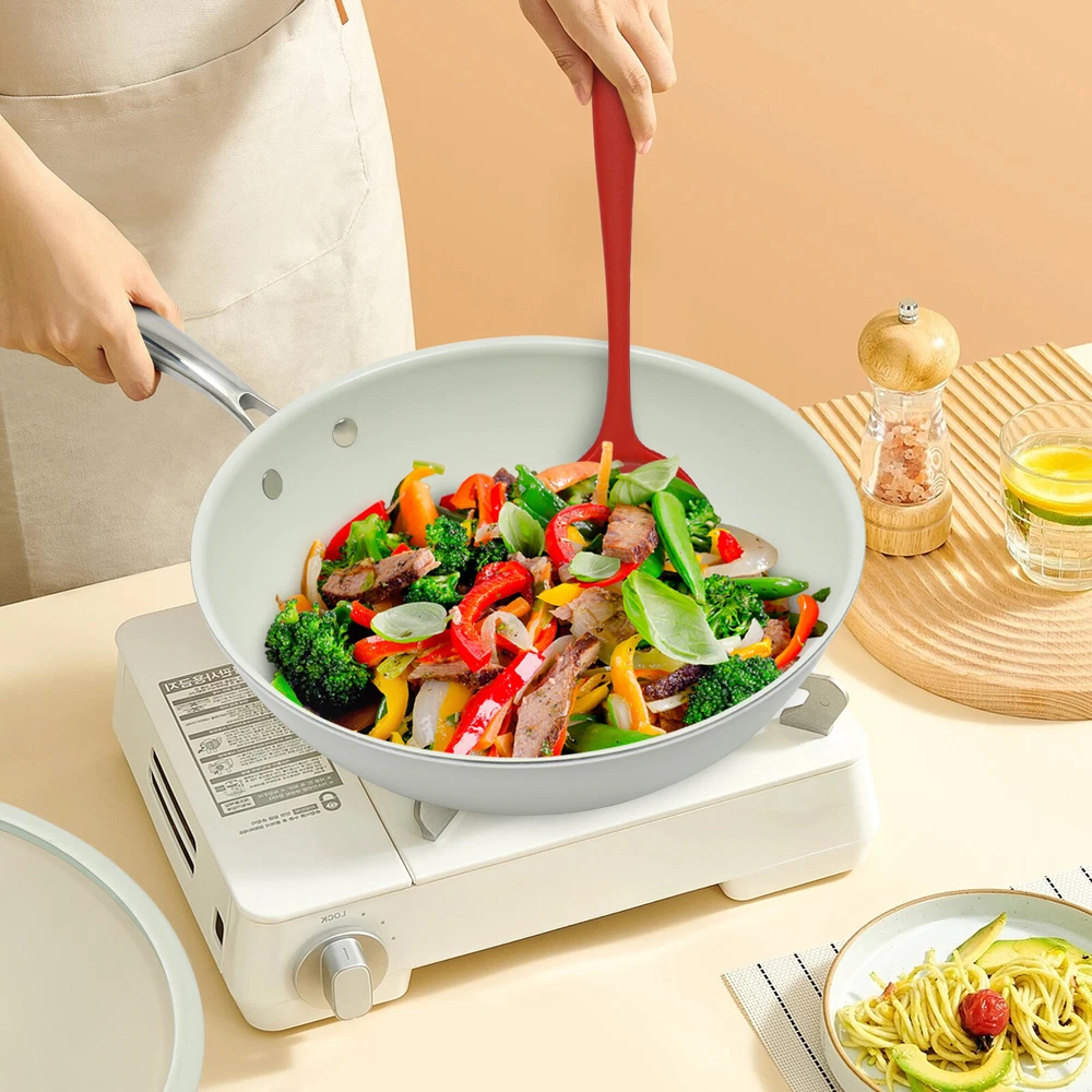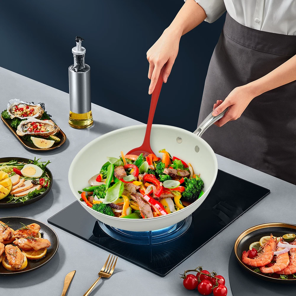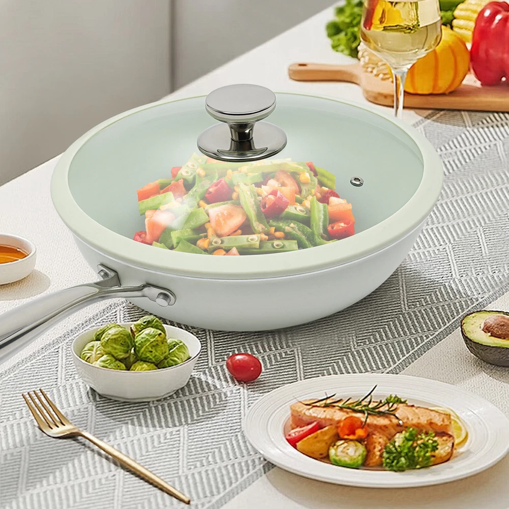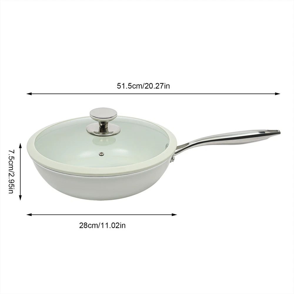 💖welcome to my store💖 Description Explore a new realm in the kitchen, starting with a frying pan that revolutionizes the cooking experience. Our non-stick frying pan is coated with advanced ceramics, which can achieve the effect of less oil fume and easy cleaning, making healthy eating simple from now on. Say goodbye to the troubles of traditional frying and enjoy the cooking time where food and fun coexist. Choose us and start your green kitchen life! Key Features High-quality Material: The product is mainly made of refined iron treated with ceramic coating. With a maximum temperature tolerance of up to 662 ℉, it is not easy to wear, rust, or discolor and does not release harmful substances, allowing you to use it with peace of mind. Non-stick Technology: The product uses advanced ceramic coating technology, making food almost non-stick to the bottom of the pot, achieving easy stir-frying, reducing oil usage, and experiencing a healthier lifestyle. Excellent Cooking Effect: The product uses a multi-layer composite bottom, combined with a thermal conductive ring, and can be cooked over low or medium heat, resulting in more even heating and reducing oil fume production, achieving energy-saving and clean cooking effects. Visible Design: The highly transparent tempered glass lid can keep warm and accelerate cooking, allowing you to observe the cooking of ingredients without opening the lid. Suitable Size: A pot with a diameter of 11.02 inches can cook food for 1-4 people, easily meeting the dining needs of ordinary families without causing waste. Multi-Functional Applicability: The product can be adapted to most stoves such as induction cookers, electric ceramic stoves, gas stoves, electric stoves, etc., meeting the needs of different kitchen equipment and having a wide range of applications. Easy to Clean: The non-stick surface and simple structure inside the pot allow you to clean it with a soft cloth and water, saving cleaning time and enjoying more cooking pleasure. Ideal Gift: Thanks to its practicability and beautiful appearance, you can give it as a gift to your friends who love cooking on their birthday, Christmas, or any other holiday. Details Practical Handles: The panhandle adopts a hollow and rivet design, which is heat-insulating and not hot to the touch. The handle on the lid allows you to easily pick up the lid. Exhaust Vent: It can balance the air pressure inside and outside the product, and prevent bumping and overflow. Silicone Spatula : The soft spatula will not damage the coating and will not release harmful substances during cooking. Application This product can be widely used in kitchens, restaurants, hotels, homestays, cafes, dessert shops, snack stalls, and other places. Specification Material: Silicone, Tempered Glass, Refined Iron Process: Ceramic Coating Color: White Shape: Circular Assembly Required: No Is Dishwasher Safe: No Is Oven Safe: No Applicable Number of People: 1-4 Temperature Tolerance: 350℃/662℉ Pan Diameter: 28cm/11.02in Product Size (L*H): 51.5*7.5cm/20.28*2.95in Package Size: 2.3kg/5.07lbs Gross Weight: 50*33*12cm/19.69*12.99*4.72in Net Weight: 2.2kg/4.85lbs Package Included 1 * Frying Pan 1 * Lid 1 * Spatula Notes Please use a wooden spatula (not included) or a silicone spatula for cooking. Please avoid rinsing high-temperature cookware directly with cold water, or scrubbing this product with rough objects such as steel wire balls (not included). Please dry this product promptly after cleaning. To extend the service life of the product, please try to use low and medium heat for cooking. Please allow the slight color difference caused by the shooting light and 1-3cm error due to manual measurement, and make sure you do not mind before ordering. Payment Delivery details Terms of sales About us Contact us Payment We accept ebay payment 。 Fees such as import duties, taxes are not included in the item price or shipping costs. These charges are the buyer's responsibility. Delivery details Shipping: 2-9 working days to: USA Terms of sales We maintain high standards of excellence and strive for hundred percent customer satisfaction. Feedback is very important to us. We hope that you contact us immediately before you give neutral or negative feedback, so that we can address your concerns. It is impossible to address issues if we do not know about them! About us Your satis faction is our ultimate goal. We work hard to earn your trust and future business. Our certified technicians have tested each item before shipping. The unit comes with 1 year limited warranty on all manufacturing defects. a) If you receive a defective item, you may return it or ask for a discount. Please contact us within 14 days after you receive the package. b) What you returned must be intact and in its original packaging as re? u. Customer is responsible for shipping costs of the returned item. c) We will cover the cost of shipping back t with the shipping rate indicated in the registration page. We will send you a new unit or refund the full payment you paid. Thank you. Contact us Business Hour Business Hour: Monday To Friday: 8:30 AM to 5:00 PM (Beijing China time) Due to time zones, our reply to your questions may not be immediately. But within above working time, we will reply your email within 24 hours. If it's non-workdays, please kindly be patient and wait till Monday. Please contact us with ebay message. Please feel free to contact us if you have any questions. Monday To Friday: 8:30 AM to 5:00 PM (Beijing China time) Due to time zones, our reply to your questions may not be immediately. But within above working time, we will reply your email within 24 hours. If it's non-workdays, please kindly be patient and wait till Monday. Please contact us with ebay message. Please feel free to contact us if you have any questions. Stove Type Compatibility N/A Brand Unbranded