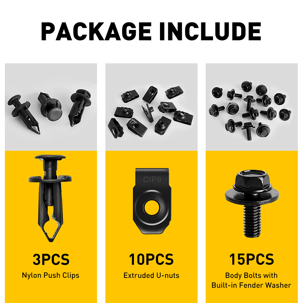Fit For: 2003-2008 Infiniti G35 Sedan 2003-2007 Infiniti G35 Coupe 2008-2014 Infiniti G37 & G37X 2003-2008 Infiniti FX35 & FX45 2008-2012 Infiniti EX35 2009-2014 Nissan 370Z 2003-2009 Nissan 350Z Specifications: Bolts: Material: Metal Color: Black Male Thread: M6-1.00 Size: M6-1.00 x 22mm Washer Diameter: 16.8mm / 0.66" Hex Head Diameter: 10mm / 0.39" U-Nuts: Material: Metal Color: Black Feamle Thread: M6 Total Size: 24.5mm x 14.5mm x 12mm / 0.96" x 0.57" x 0.47" (L*W*H) 28/56x Car Engine Splash Shield Body Bolts Screw Nut Fender Bumper Clip Rivet M Fit For: 2003-2008 Infiniti G35 Sedan 2003-2007 Infiniti G35 Coupe 2008-2014 Infiniti G37 & G37X 2003-2008 Infiniti FX35 & FX45 2008-2012 Infiniti EX35 2009-2014 Nissan 370Z 2003-2009 Nissan 350Z Specifications: Bolts: Material: Metal Color: Black Male Thread: M6-1.00 Size: M6-1.00 x 22mm Washer Diameter: 16.8mm / 0.66" Hex Head Diameter: 10mm / 0.39" U-Nuts: Material: Metal Color: Black Feamle Thread: M6 Total Size: 24.5mm x 14.5mm x 12mm / 0.96" x 0.57" x 0.47" (L*W*H) Plastic Push Clips: Material: Plastic Color: Black Head Diameter: 15mm / 0.6" Stem Length: 20mm / 0.8" Fit Into 8mm / 0.31" Hole Placement on vehicle:Used widely for car fender, bumper, door, side skirt or other car surface Features: *Superior material Adopt to excellent metal and plastic materials to prevent it from corrosion and cracking. *Function These clips are suitable for firmly holding anything within a fit diameter hole. *Easy installation Simple installation with direct replacement, other modification is not required. *Please Note: Communication is the best way to solve the problem. If you have any problems after purchasing, please contact us via eBay Message, before opening return or case. Packaging include: Body Bolts with Built-in Fender Washer*15 Extruded U-nuts*10 Plastic Push Clips*3 ABOUT US 28/56x Car Engine Splash Shield Body Bolts Screw Nut Fender Bumper Clip Rivet M Fit For: 2003-2008 Infiniti G35 Sedan 2003-2007 Infiniti G35 Coupe 2008-2014 Infiniti G37 & G37X 2003-2008 Infiniti FX35 & FX45 2008-2012 Infiniti EX35 2009-2014 Nissan 370Z 2003-2009 Nissan 350Z Specifications: Bolts: Material: Metal Color: Black Male Thread: M6-1.00 Size: M6-1.00 x 22mm Washer Diameter: 16.8mm / 0.66" Hex Head Diameter: 10mm / 0.39" U-Nuts: Material: Metal Color: Black Feamle Thread: M6 Total Size: 24.5mm x 14.5mm x 12mm / 0.96" x 0.57" x 0.47" (L*W*H) Plastic Push Clips: Material: Plastic Color: Black Head Diameter: 15mm / 0.6" Stem Length: 20mm / 0.8" Fit Into 8mm / 0.31" Hole Placement on vehicle:Used widely for car fender, bumper, door, side skirt or other car surface Features: *Superior material Adopt to excellent metal and plastic materials to prevent it from corrosion and cracking. *Function These clips are suitable for firmly holding anything within a fit diameter hole. *Easy installation Simple installation with direct replacement, other modification is not required. *Please Note: Communication is the best way to solve the problem. If you have any problems after purchasing, please contact us via eBay Message, before opening return or case. Packaging include: Body Bolts with Built-in Fender Washer*15 Extruded U-nuts*10 Plastic Push Clips*3 FAQ Shipping Returns Contact Us Payment Why swith to LED? LEDs not only give your vehicle a clean, modern look but, with proper use, will outlast any halogen bulb and HID bulb! Low energy draw, high lumen output, and instant on/off LED technology out shines stock bulbs in every way. Which bulbs are used in my vehicle? Check Sylvania automotive lamp replacemnt guide , you can select the year, make, and model of your vehicle, then select the application you want to replace or upgrade from stock. What does CAN Bus mean? CAN Bus means Controller Area Network Bus. This system monitors your vehicle and reports operating conditions. CAN Bus systems are commonly found in European vehicles such as BMW, Audi, Mercedes, Volkswagen, Porsche, and in many American vehicles. While most late model American vehicles have CAN Bus systems, it is always good to check with your vehicle dealer to see which system your vehicle has before purchasing electrical products. When do you need Warning Canceller? Some vehicles with cmplex internal computers(such as Audi,BMW,Jaguar,Mercedes,etc.) might report on-dash errors or flickering on the headlights. The warning canceller fixes the dashboard warning and flickering effect. Bulb Out Dashboard Error: On some vehicles, the dashboard will report as if you have a headlight bulb missing or burnt. It does not affect the headlights functioning, but the light on-dash will be on. The warning canceller fixes the issue. Flickering Issue: This happens when your vehicle does not recognize the new headlights installed. When turning the headlights on, the vehicle's computer does not understand the signal back from the headlights hence thinking they are still off. This triggers the headlight flickering effect. The warning canceller solves this issue. LED Advantages: Very low and efficient energy consumption than halogen bulbs & HID Bulbs Compared with HID bulbs, LED bulbs Light up instantly, no warm up period Low voltage protection, high precision constant current driver chip Longer lifespan than HID and halogen bulbs Light can be controlled easily in color and intensity Easy to install a LED headlight conversion kit (1) We will ship your item(s) within 24 hours. (2) We ship this item to US only via USPS first class mail. It usually takes 3-6 working days to deliver. How Long Will It Take to Receive My Refund? If you have emailed us for a refund ,once we have approved it ,after 60 days your money will be refunded. The estimated time for the refund to appear in your account is based on the payment method you use. Paypal is the only supported in NIGHTEYE Store. Please notify us within 30 days after you've received your purchased item. All return requests must be submitted through your eBay account. NOTE: Buyers pay for the retu