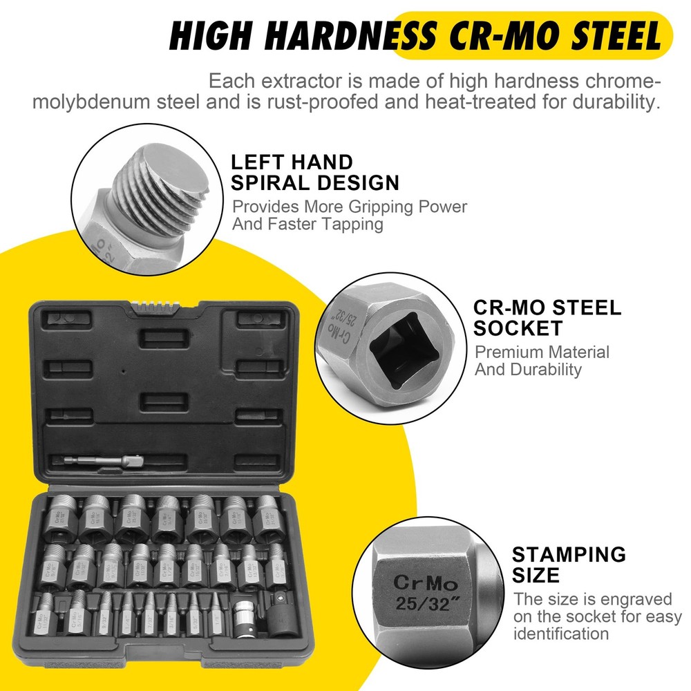 29 Piece Bolt Extractor Kit,Easy Out Stripped Screw Extractor Set For Removin...
