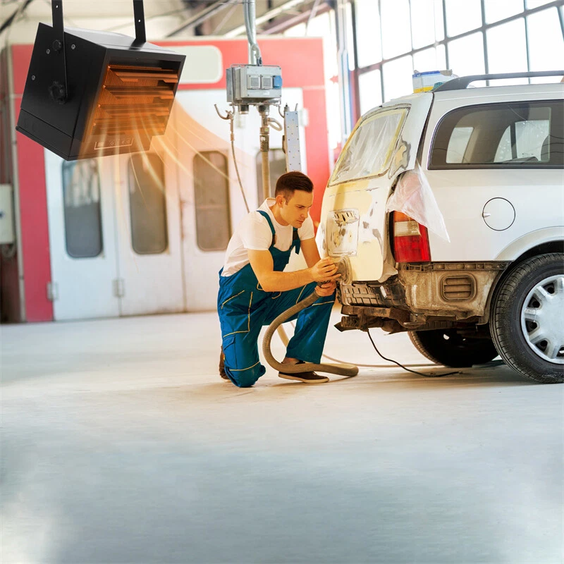 29010 BTU Forced Air Electric Garage Heater Wall Warmer 240V Warehouse Workshop Description: Adjustable & 2 Heat Settings: This garage heater has adjustable panels for precise airflow direction. Its maximum BTUs of 29010 is powerful enough to heat a large area up to 750 square feet. Power ranges from 6400W to 8500W to meet your different needs; Built-in adjustable thermostat with 2 Heat Settings Overheated Protection: The garage heater is equipped with safety features to prevent overheating. It utilizes a durable heating element and has built-in thermostats and fuses. If the heater detects overheating, it will automatically shut off to prevent any potential hazards. Convenient Remote Control and LED Touch Screen Display: The heater comes with a remote control for convenient operation. It also features an LED touch screen display that allows you to easily monitor and adjust the settings. Timer Function: This garage heater includes a timer function that lets you set an auto-off timer ranging from 1 to 8 hours. Additionally, it has a smart ECO mode that can automatically adjust the heating mode or turn off the heater based on the ambient temperature. These features help you save energy and reduce heating costs. Safe & Sturdy Structure: The heater is constructed from heavy-duty steel material, making it strong, durable, and long-lasting. It is ETL certified, ensuring that it meets safety standards for your peace of mind while using it in your workshop or garage. Specifications: Main Color:Black Main Material:Iron power:8500W Volts: 208/240V/60Hz Watts:6400W/8500W BTUS: 21843 BTU and 29010 BTU Package Size: 18.7"L x 14.6"W x 15.7"H Package Weight:25.40lbs Product Features: Durable Heating Element Built-in adjustable thermostat with 2 Heat Settings Over-heating Protection Convenient remote control and LED touch screen display and control Adjustable angles for horizontal and vetical mounting bracket with safety lock Adjustable panels for precise airflow direction Space saving ceiling mounted design