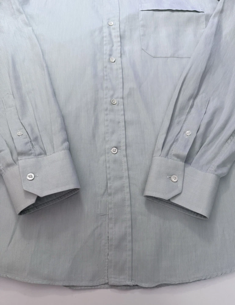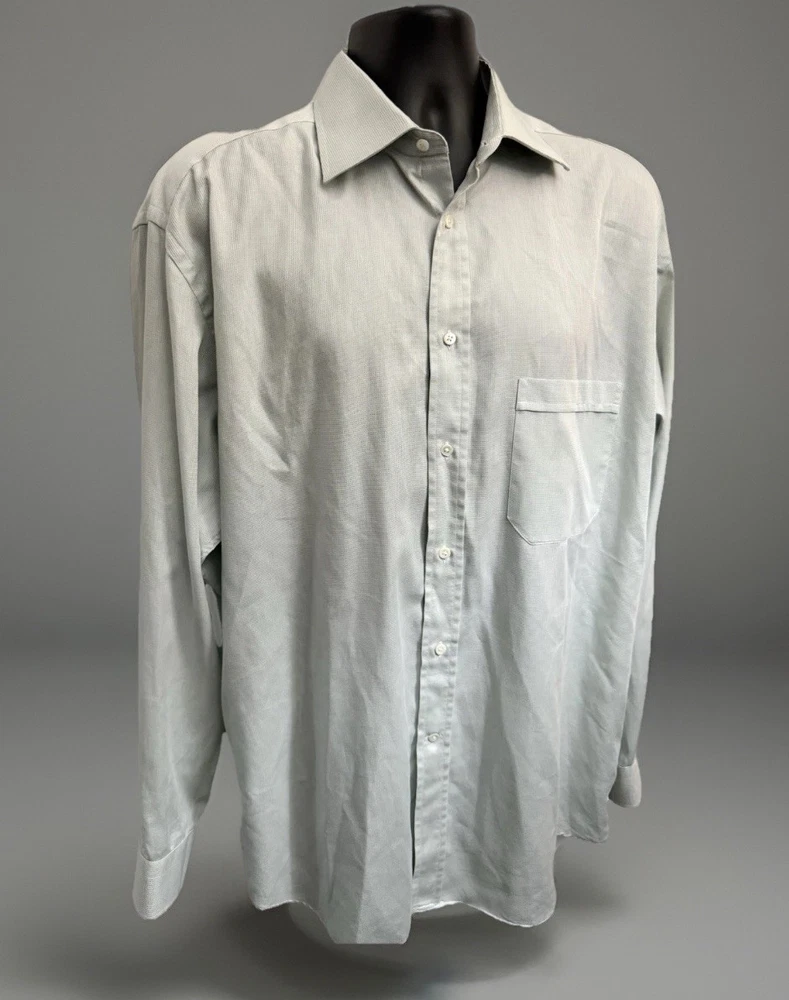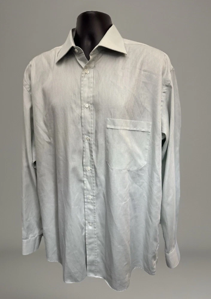 EUC. No signs of wear or flaw. LNWOT. Looks unworn or new. The product is a high-quality Canali dress shirt for men, made in Italy. It features a solid light green and hint of blue color with a textured weave, perfect for various occasions including formal events, workwear, and casual outings. With a spread collar, barrel cuff, and button closure, this shirt offers a classic and preppy look. The cotton material and machine washable fabric make it easy to care for and suitable for all seasons. With its designer Italian theme, this shirt is a versatile and stylish addition to any man's wardrobe. CANALI is a high end Italian brand known for its quality craftsmanship. Measurements: Armpit to armpit: 25” Shoulder to hem: 32” Curve hem FLAT FEE NEXT DAY SHIPPING WITHIN THE US