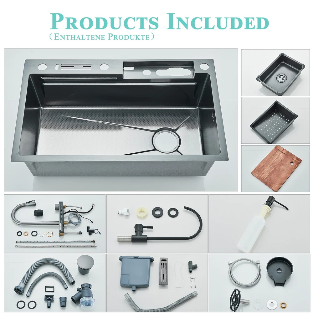 Store Categories Store Categories China Warehouse Shipment CN-Accessories CN-Basin Faucet CN-Bathtub Faucet CN-Kitchen Faucet CN-Shower Faucet CN-Shower Panel CN-Shower Set CN-Shower Head U.S. warehouse shipment Accessories Basin Faucet Bathtub Faucet Kitchen Faucet Shower Faucet Shower Head Shower Panel Shower Set Kitchen Faucet 2 UK warehouse shipment Accessories Basin Taps Bathtub Taps Kitchen Taps Shower Taps Shower Head Shower Panel Shower Set Shipment from German warehouse Other Product Certification Details Function: Kitchen sink with Kitchen Sink Faucet Feature: Integrated faucet Finish: Matte Gray Sink Length: 750 mm Sink width: 460 mm Sink height: 210 mm Faucet Total Height: 400 mm Spout Height: 190 mm Faucet Body Material: Stainless steel Faucet Spout Material: ABS Plastics Sink Material: 201 Stainless steel Shipment & conditions Payment Method Contact us Feedback Shipment & conditions Usually shipment can be arranged within 2working days after receiving payment. Each item can be shipped out if payment received before 17:00 each day. We usually ship via Fedex , UPS, USPS. We have warehouses in many locations in the United States, and will use the warehouse closest to you for shipment. We ship to the address in the order.Therefore, please make sure that the address you fill in when purchasing is correct. After the product ships, the estimated delivery time in the order is the best-case scenario. We cannot guarantee delivery within the estimated delivery time. Because logistics and transportation have great uncertainty. The buyer is responsible for returning the product if it is not a quality problem. Payment Method Paypal, Google Pay, VISA, AMEX, etc. Contact us Shipping damage has to be reported within 5 business days of which the product was delivered. If you have any questions, please be free to contact with us,we will answer your questions ASAP. We will answer your question via email, please check your email for the answers. Feedback I describe items as well as I can. If I have missed something, please let me know. Please e-mail me before leaving feedback if you are unhappy with your item, so we can work it out. International Buyers – Please Note: Import duties, taxes, and charges are not included in the item price or shipping cost. Urheberrecht©Xifumixertaps On Oct 18, 2024 at 00:51:29 PDT, seller added the following information: