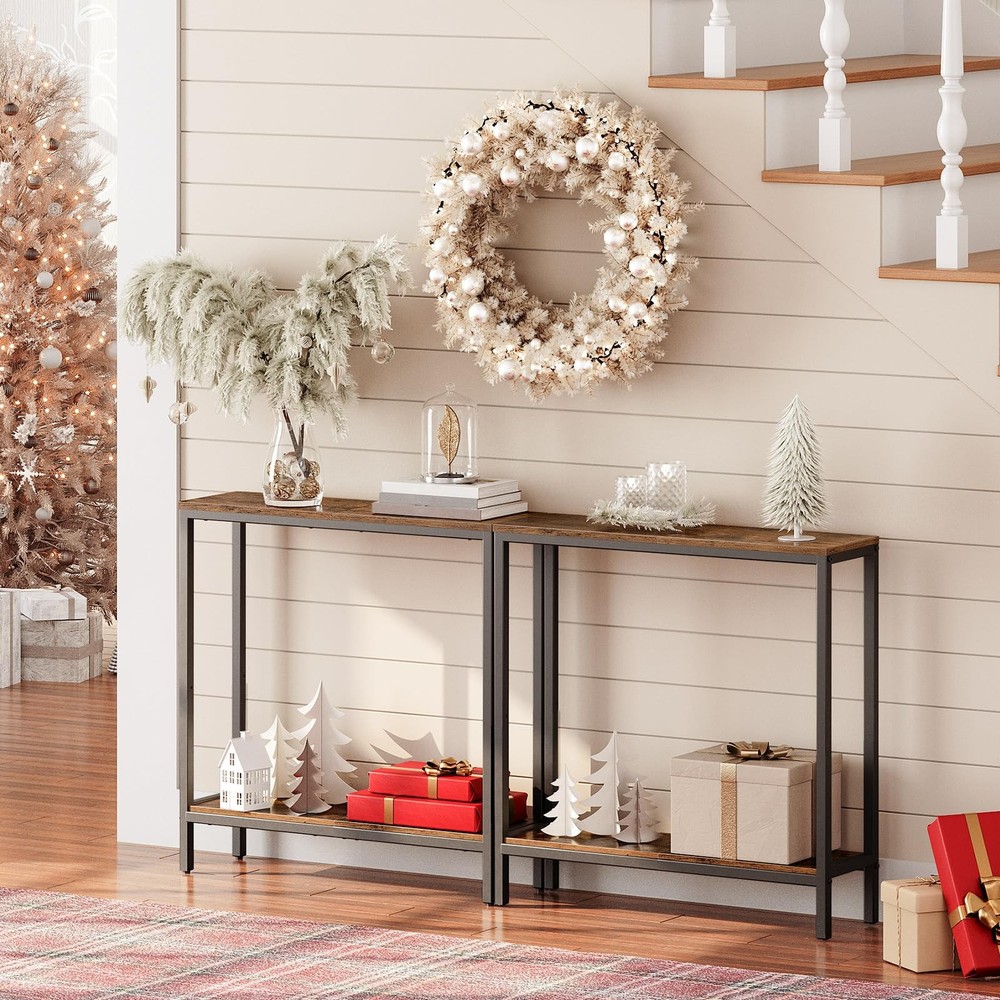 This narrow console table is a game-changer for small spaces! It fits perfectly behind my sofa, adding both style and function. The shelves provide extra storage, and the sleek design blends seamlessly in any room. I love using it in my entryway for keys and decor—it’s sturdy, easy to assemble, and looks way more expensive than it is. Highly recommend for anyone needing versatile, space-saving furniture!