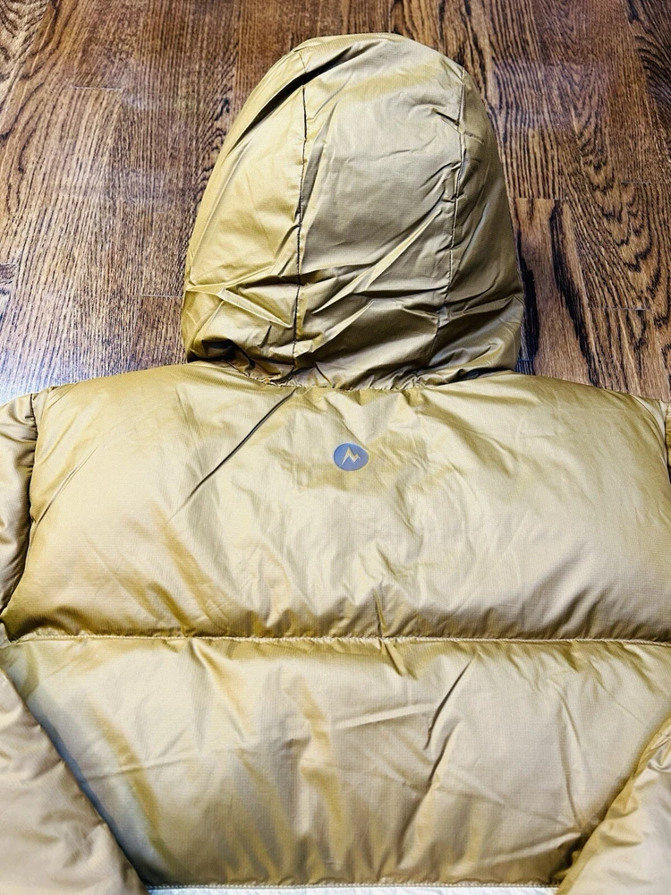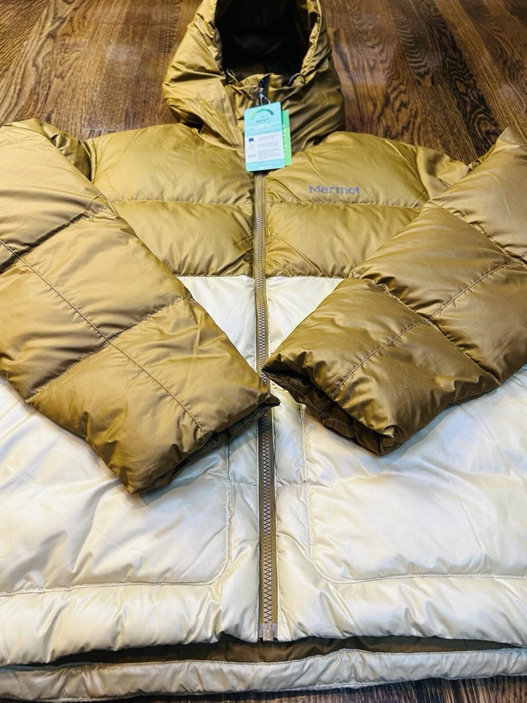 Stay warm and stylish with this Marmot Guides Down Hoody Puffer Jacket in Hazel Brown Cream. Made with soft shell fabric and a stand-up collar, this mid-length parka features a full zip closure and zipped pockets for your convenience. The jacket is wind-resistant, lightweight, and quick-drying, making it perfect for winter outdoor activities like skiing, hiking, and hunting. The Marmot Down product line ensures that you get the best quality in a jacket that is machine washable. This jacket is perfect for travel, casual wear, and workwear. The jacket is available in size 2XL and is a regular fit. The Marmot Guides Down Hoody Puffer Jacket is a must-have for anyone who wants to stay warm and fashionable in the winter season.