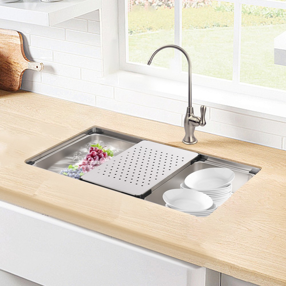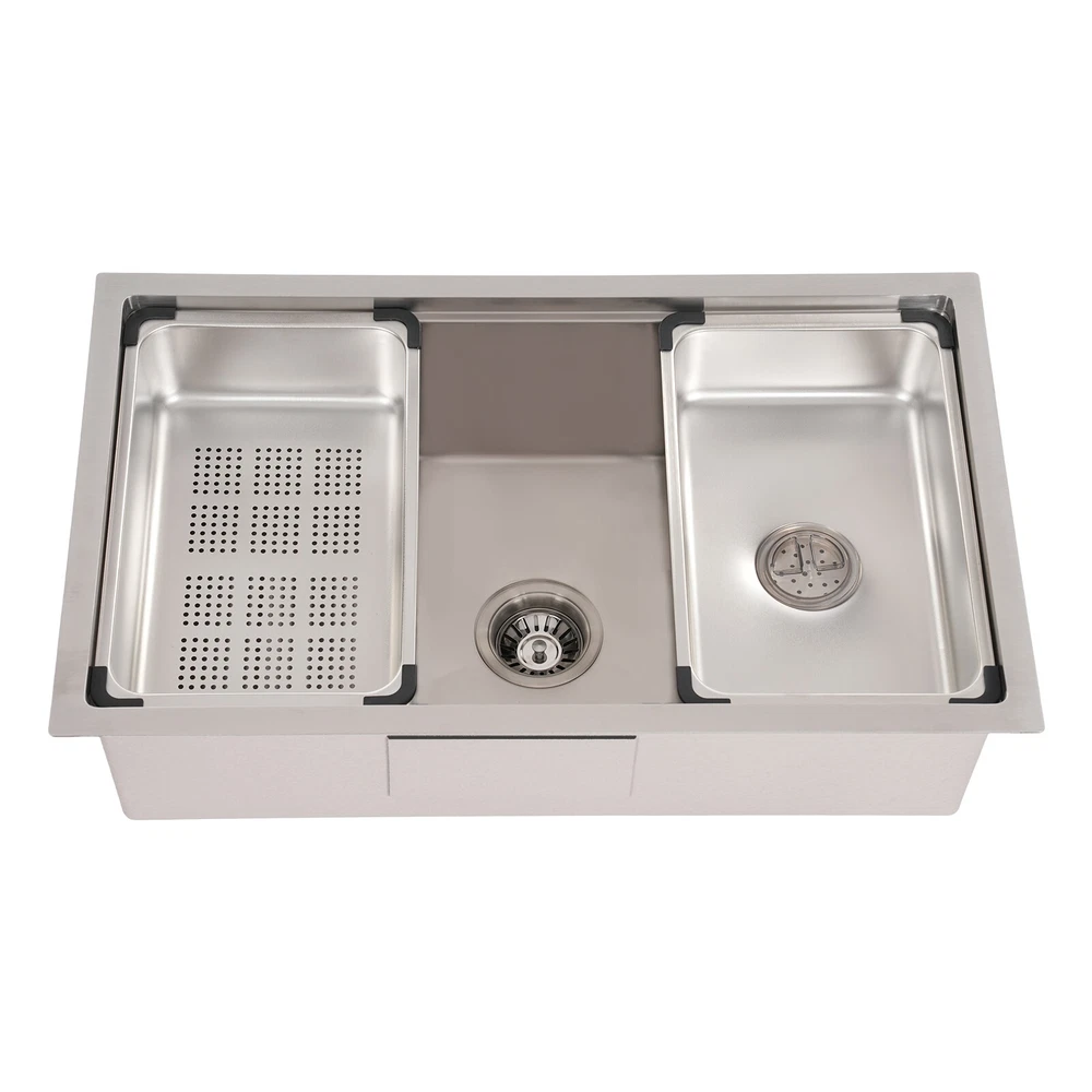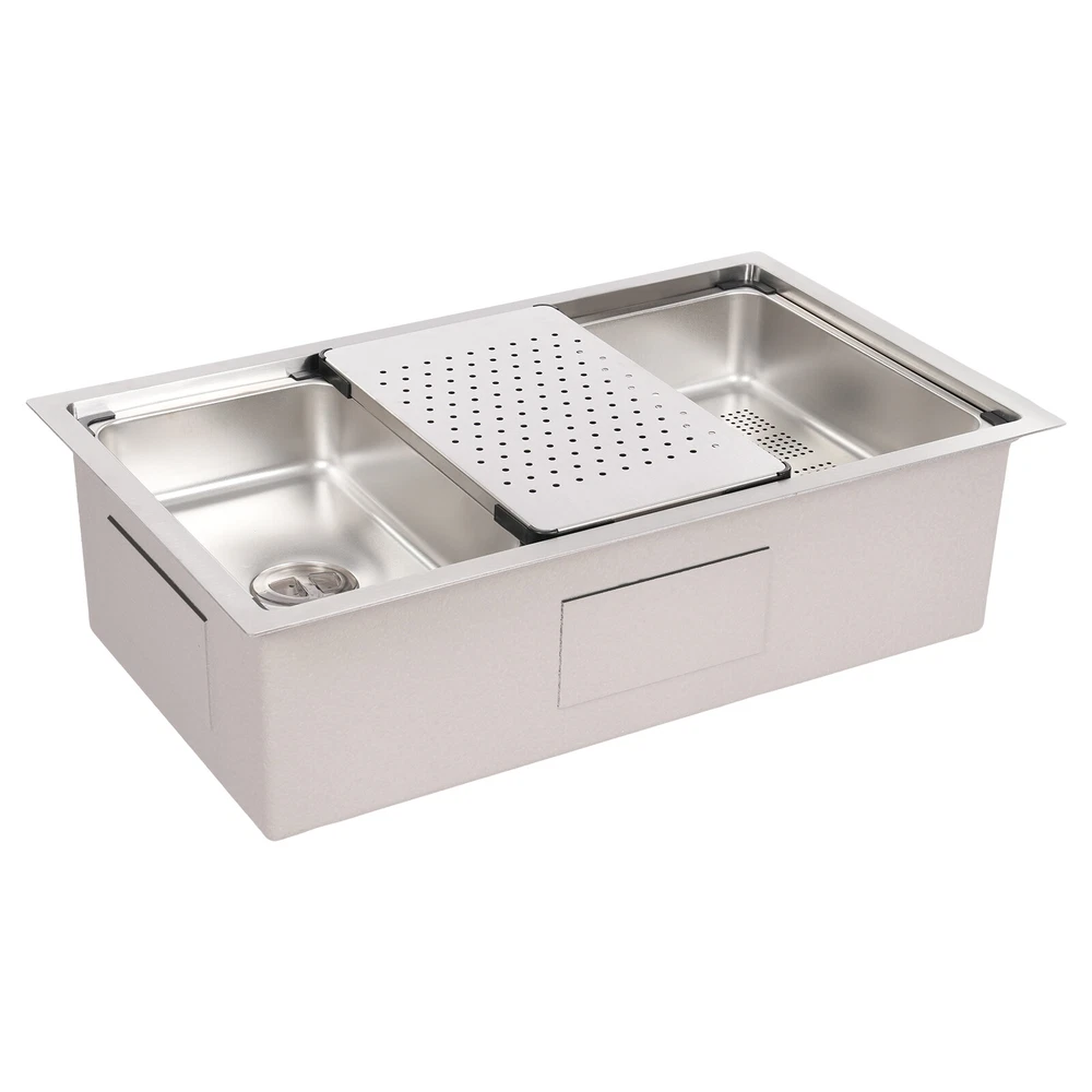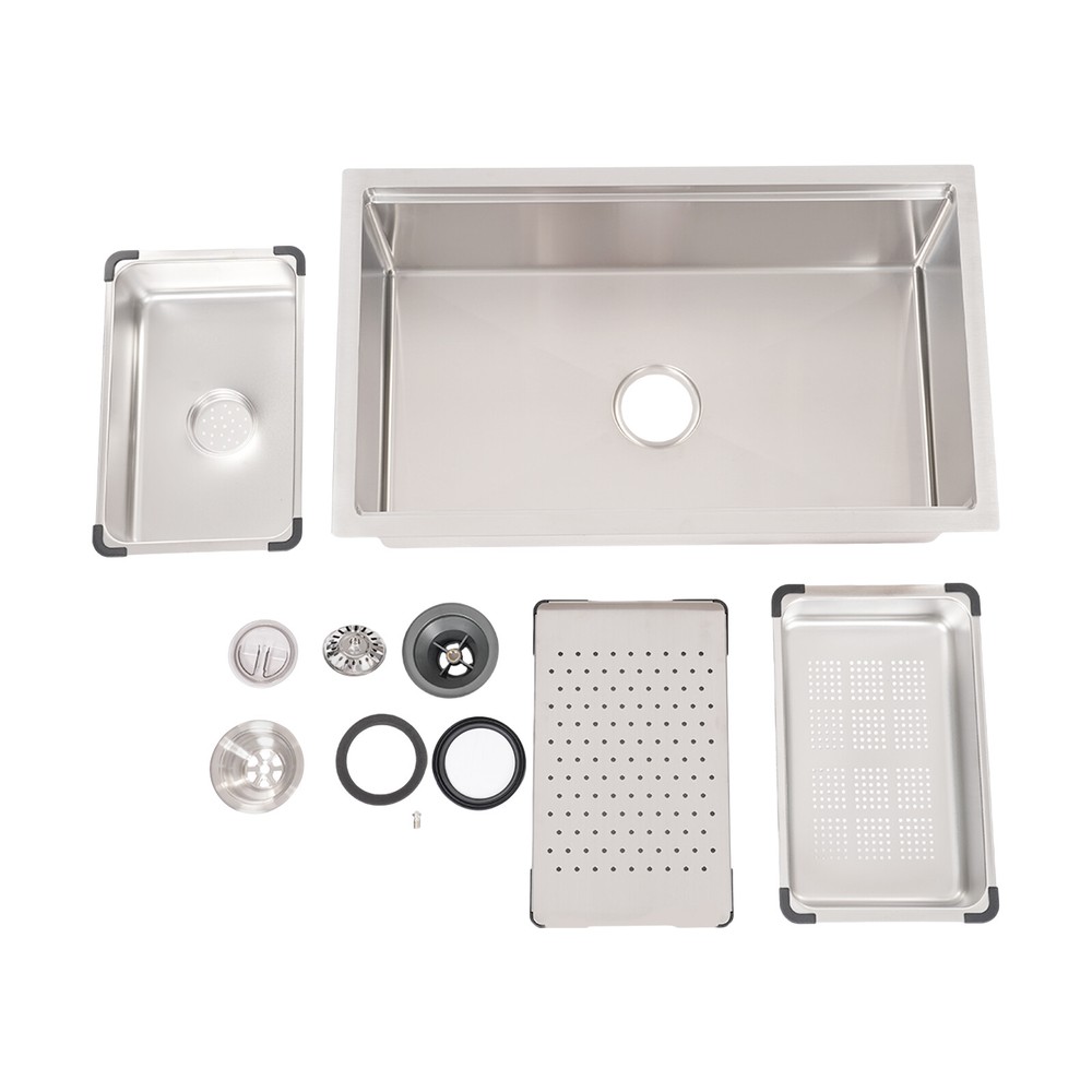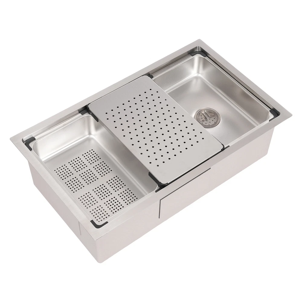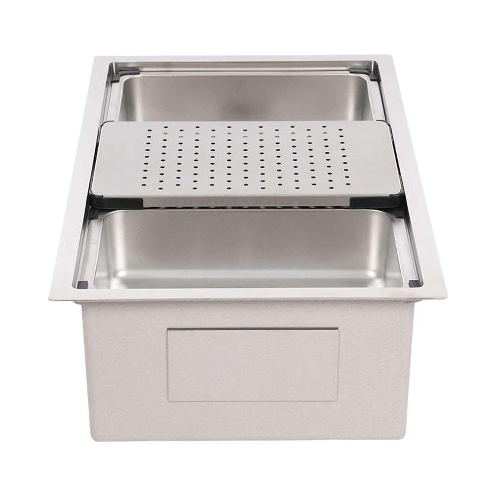 Specifications Style: Modern Material: 304 Stainless Steel, 201 Stainless Steel, Rubber, Plastic Shape: Rectangle Installation Type: Undermount, Overmount, Drop-In Color: Silver Process: Brushed Assembly Required: Yes Drain Opening: 11cm/4.33in Product Size: 76*45.8*22cm/29.92*18.03*8.66in Package Size: 79*49*29cm/31.1*19.3*11.4in Gross Weight: 12.5kg/27.6lbs Net Weight: 11.8kg/26.01lbs Package Included 1*Stainless Steel Sink 1*Draining Basket 1*Inner Basin 1*Draining Board All Accessories for Assembly 29.92*18.03*8.66 in Rectangular Kitchen Sink Stainless Steel Drop-In Sink Details X-Deflector Line: It can effectively drain water and avoid water accumulation inside the sink. Plastic Wrapped Corners : They not only make it possible to place draining baskets, inner basin , and draining boards more snugly but also prevent scratches to the sink. Practical Sealing Ring : It makes the connection tighter, effectively reducing water leakage and saving you costs. Raised Edges : The raised edges can efficiently prevent overflowing, and keep your kitchen dry and clean. Strainer Center Knob : It helps lift the strainer basket quite easily for fast draining. Application It is ideal for hand washing and cleaning food, fruits and vegetables. It can be used in commercial restaurants, dessert shops, clean rooms, utility rooms, cafeterias, garages, laundry rooms, basements, patio bars, kitchens, food trucks, and more. Specifications Style: Modern Material: 304 Stainless Steel, 201 Stainless Steel, Rubber, Plastic Shape: Rectangle Installation Type: Undermount, Overmount, Drop-In Color: Silver Process: Brushed Assembly Required: Yes Drain Opening: 11cm/4.33in Product Size: 76*45.8*22cm/29.92*18.03*8.66in Package Size: 79*49*29cm/31.1*19.3*11.4in Gross Weight: 12.5kg/27.6lbs Net Weight: 11.8kg/26.01lbs Package Included 1*Stainless Steel Sink 1*Draining Basket 1*Inner Basin 1*Draining Board All Accessories for Assembly Payment Delivery details Terms of sales About us Contact us Payment We accept ebay payment 。 Fees such as import duties, taxes are not included in the item price or shipping costs. These charges are the buyer's responsibility. Delivery details Shipping: 2-9 working days to: USA Terms of sales We maintain high standards of excellence and strive for hundred percent customer satisfaction. Feedback is very important to us. We hope that you contact us immediately before you give neutral or negative feedback, so that we can address your concerns. It is impossible to address issues if we do not know about them! About us Your satis faction is our ultimate goal. We work hard to earn your trust and future business. Our certified technicians have tested each item before shipping. The unit comes with 1 year limited warranty on all manufacturing defects. a) If you receive a defective item, you may return it or ask for a discount. Please contact us within 14 days after you receive the package. b) What you returned must be intact and in its original packaging as re? u. Customer is responsible for shipping costs of the returned item. c) We will cover the cost of shipping back t with the shipping rate indicated in the registration page. We will send you a new unit or refund the full payment you paid. Thank you. Contact us Business Hour Business Hour: Monday To Friday: 8:30 AM to 5:00 PM (Beijing China time) Due to time zones, our reply to your questions may not be immediately. But within above working time, we will reply your email within 24 hours. If it's non-workdays, please kindly be patient and wait till Monday. Please contact us with ebay message. Please feel free to contact us if you have any questions. Monday To Friday: 8:30 AM to 5:00 PM (Beijing China time) Due to time zones, our reply to your questions may not be immediately. But within above working time, we will reply your email within 24 hours. If it's non-workdays, please kindly be patient and wait till Monday. Please contact us with ebay message. Please feel free to contact us if you have any questions.
