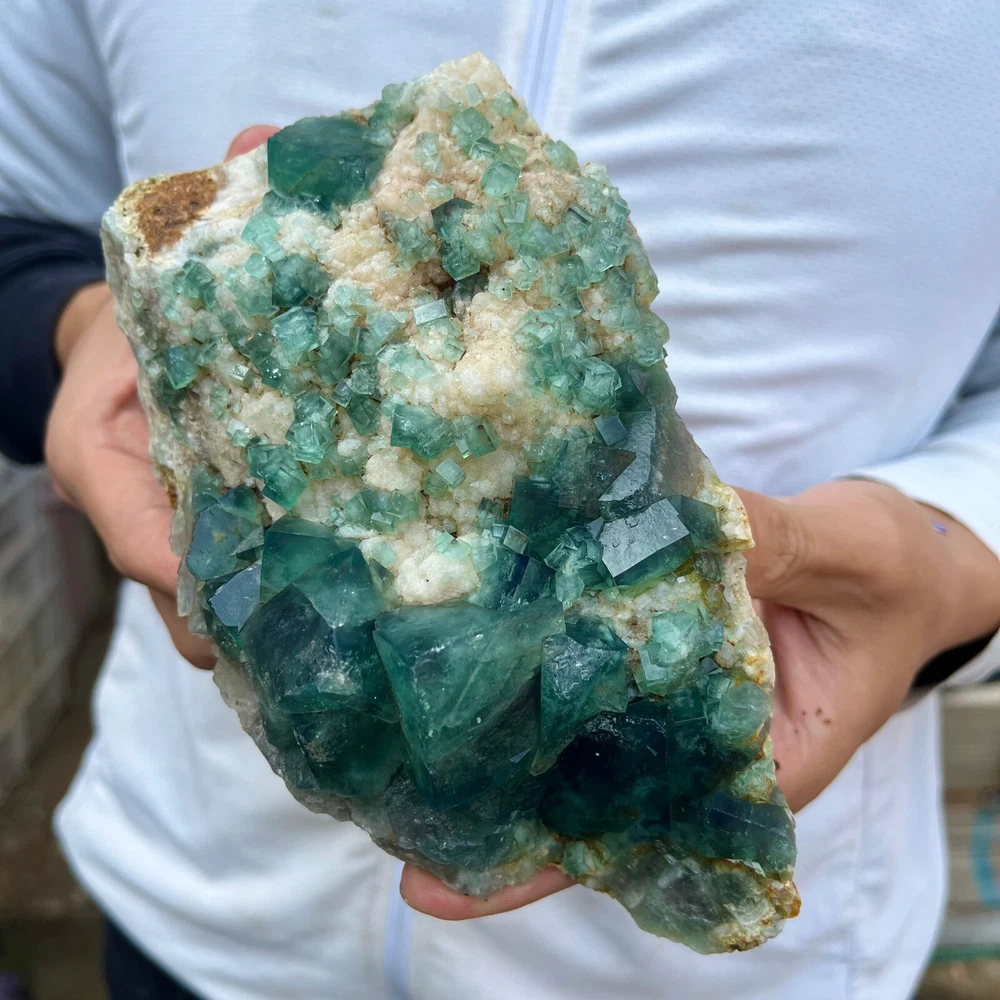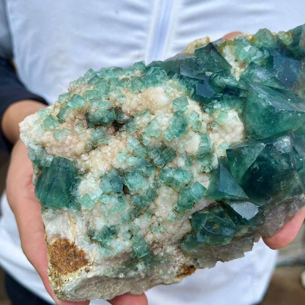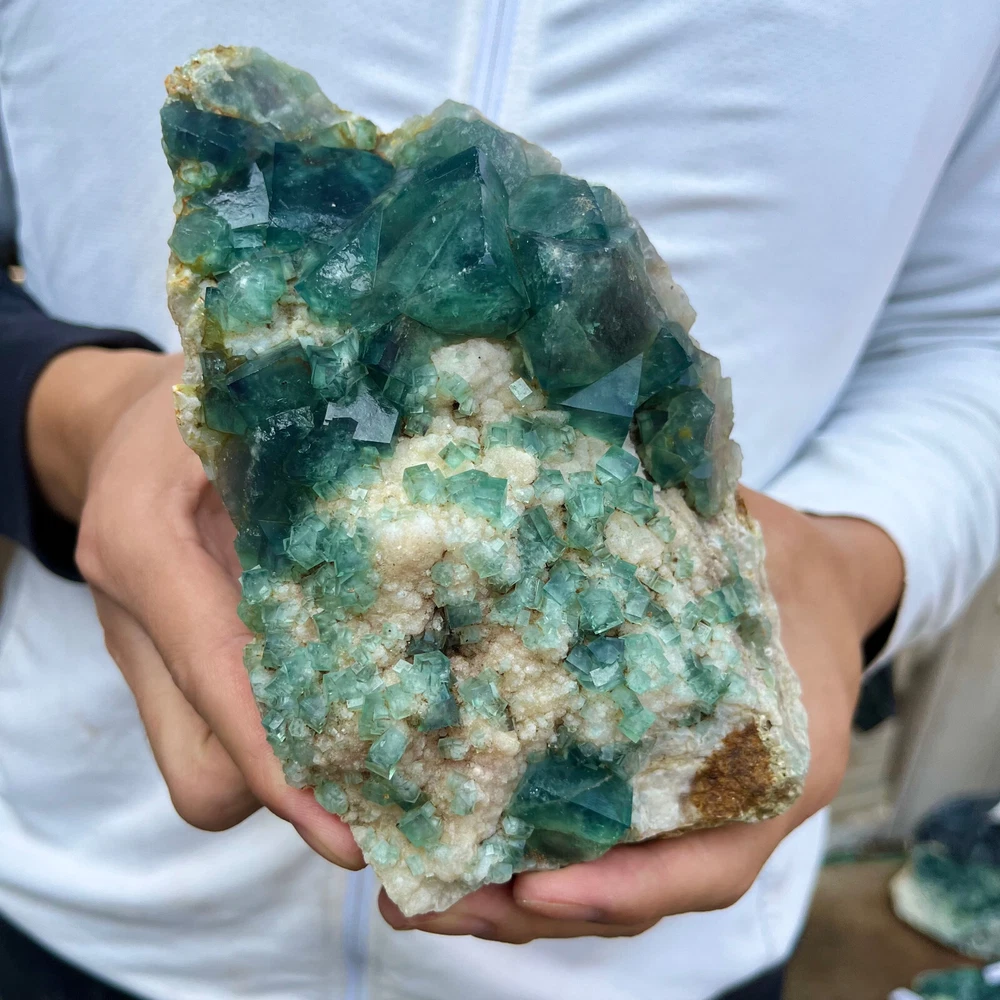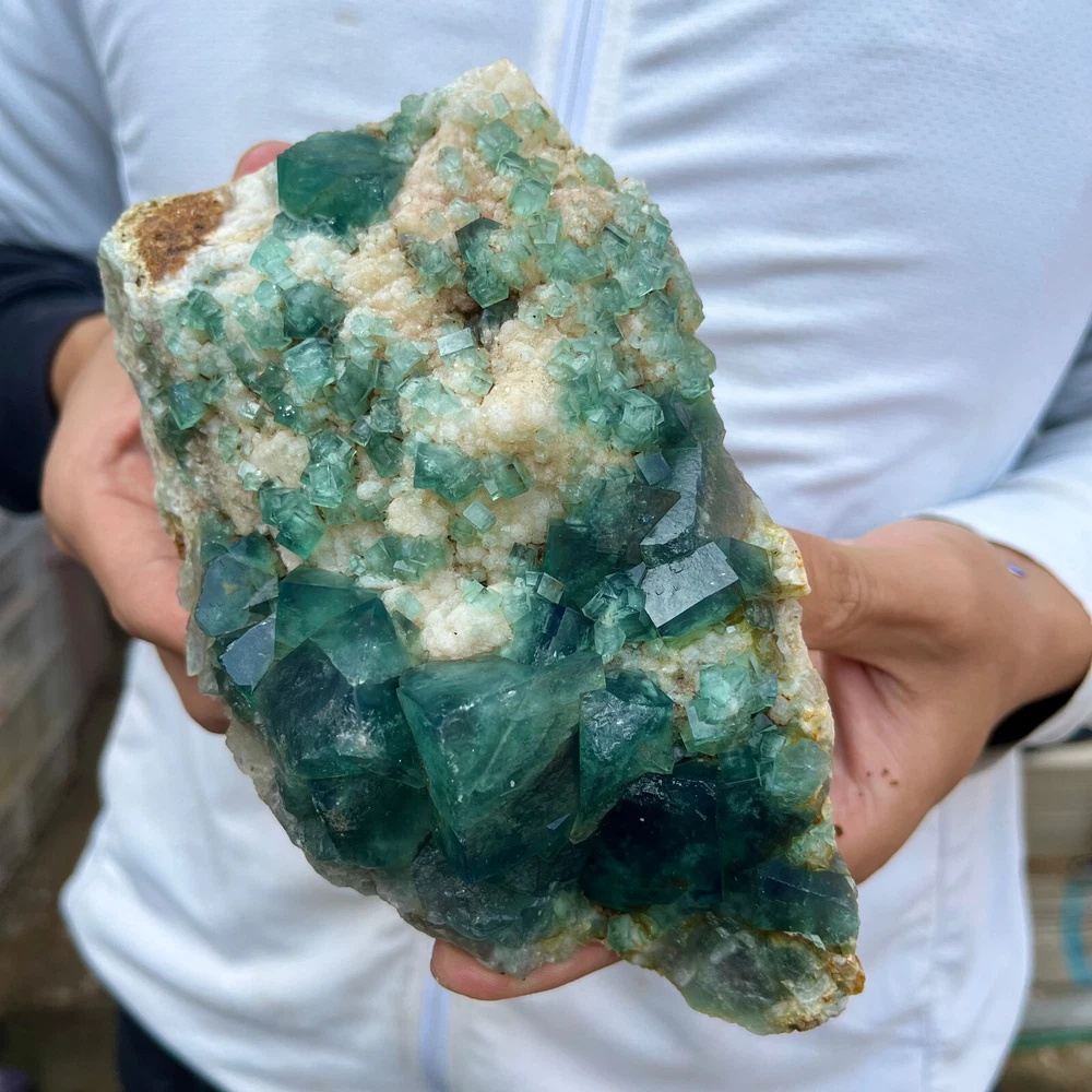 2.9LB Natural Green Fluorite Cube Quartz Crystal Cluster Mineral Specimen