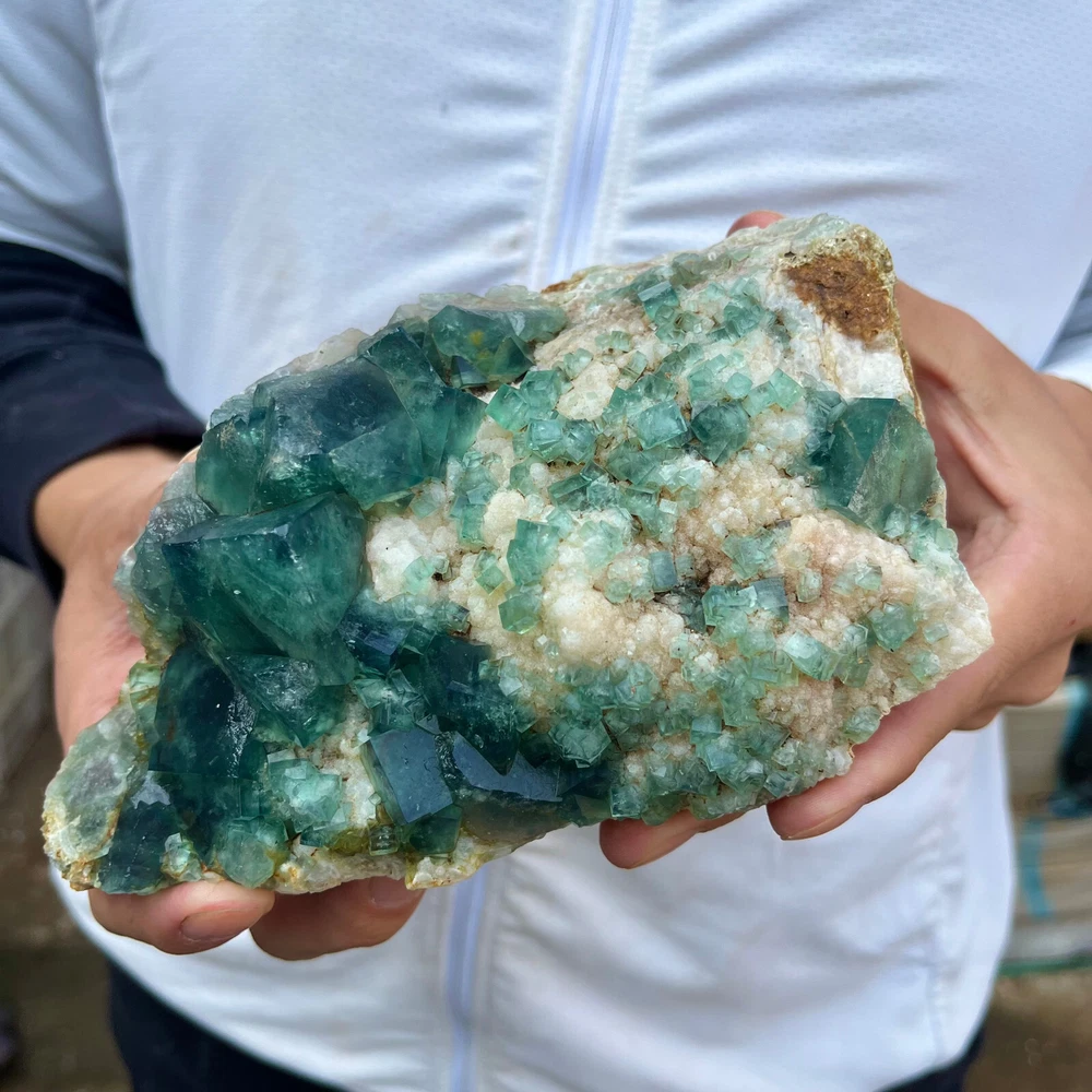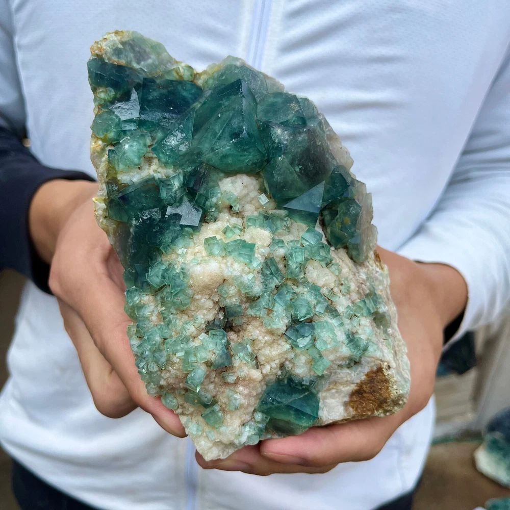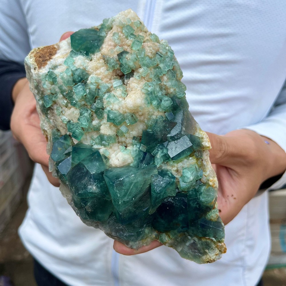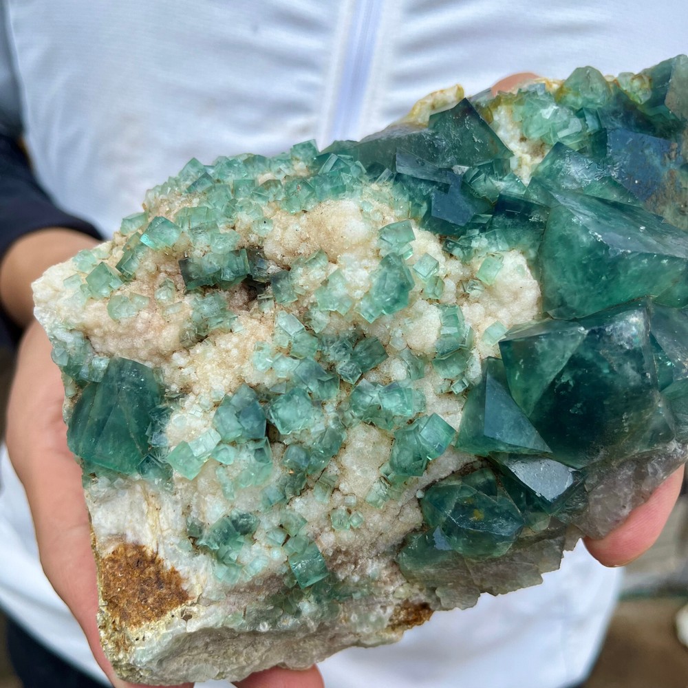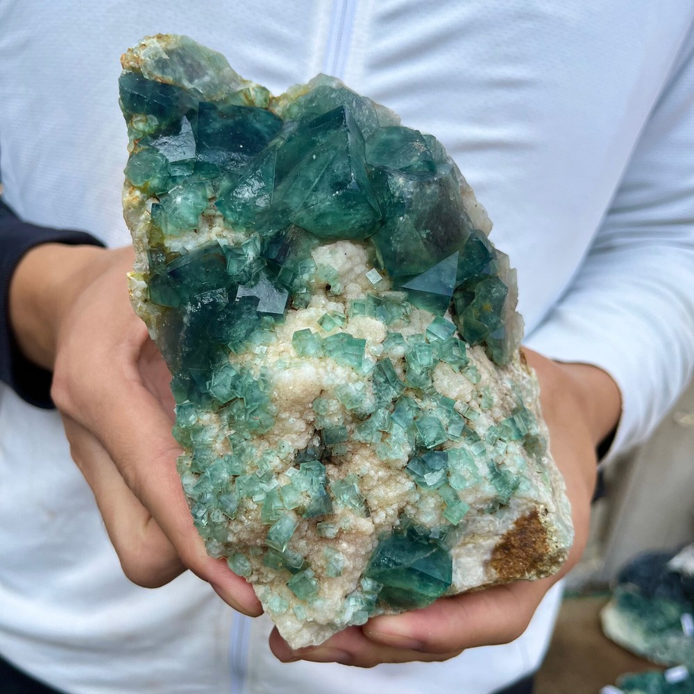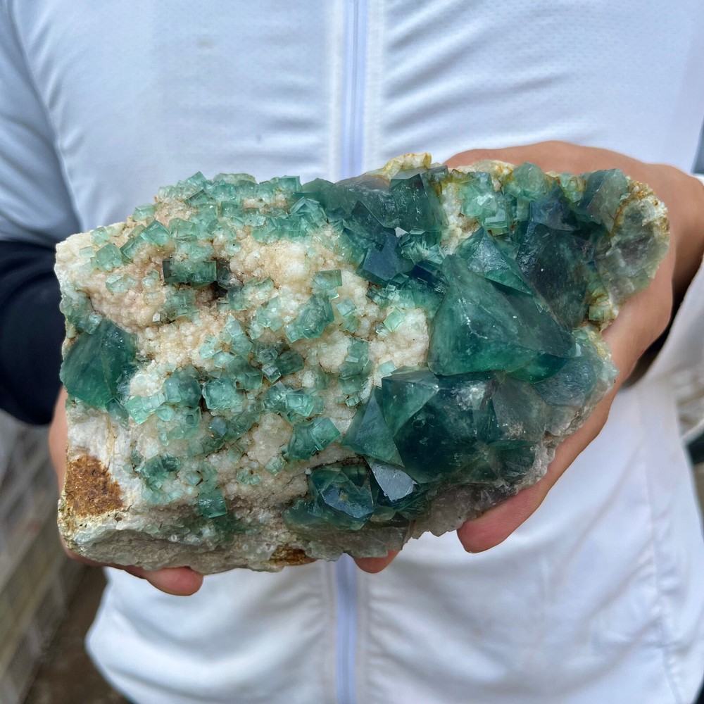1. Amazing blue green hues in the fluorite. Item got here super quickly and it was wrapped completely in bubble wrap and tape. It looks exactly like the picture. It’s a solid chonk of a rock with interesting white flecks of crystal on the bottom. A+ transaction!!!