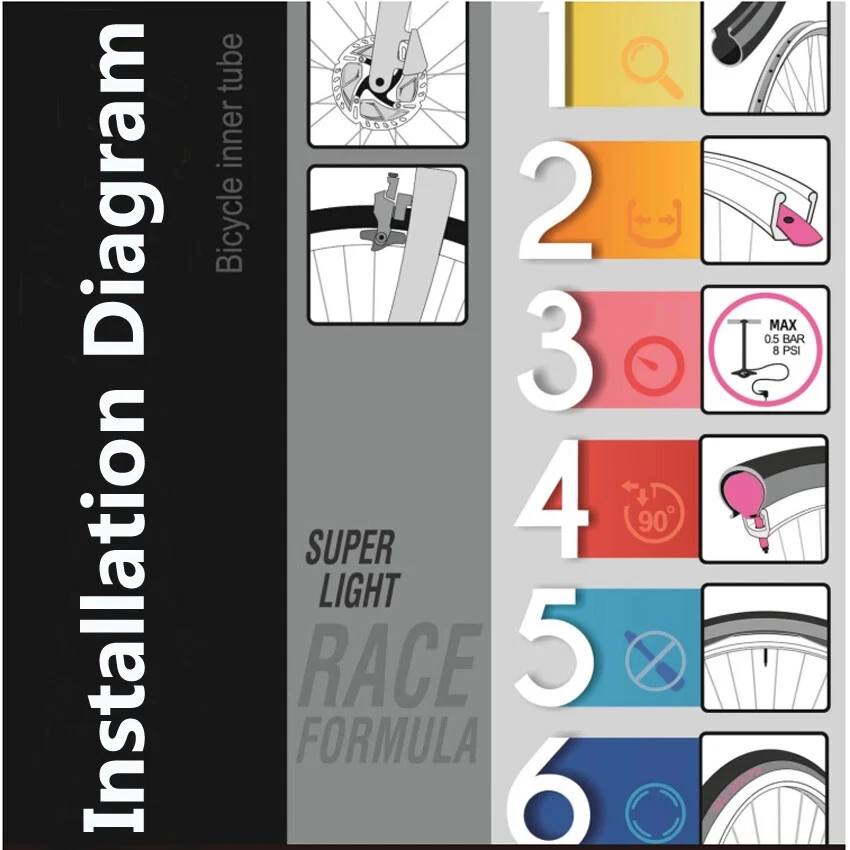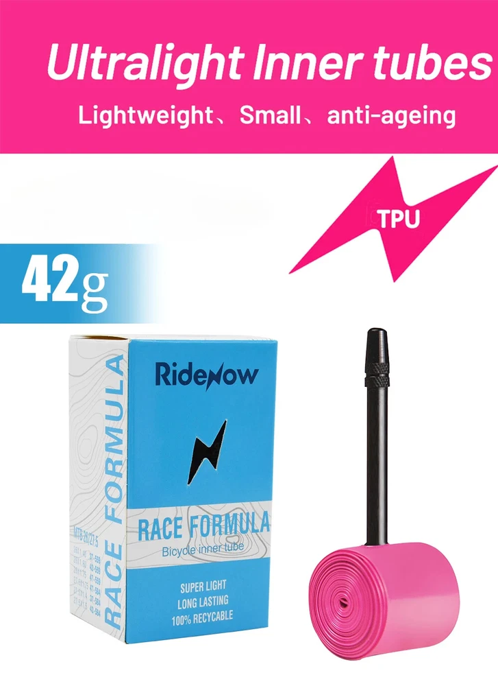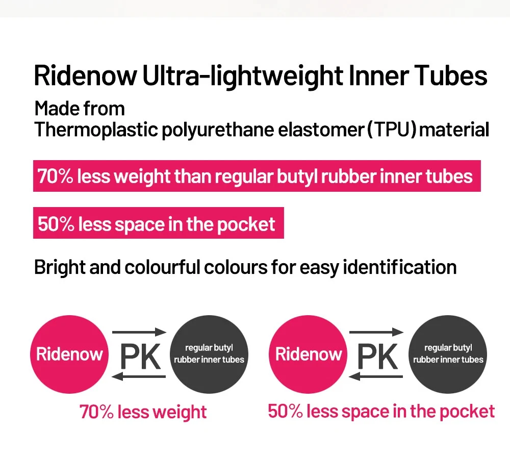 This inner tube cannot be inflated a lot when it is not installed in the outer tire, otherwise it will cause irreversible damage! Please use a manual air pump instead of high-speed air filling equipment such as air compressors or pumps. Before inflating the RideNow tube, turn the valve inward (towards the center of the tire circle). Inflate a small amount until the inner tube is round; this pressure should be less than 0.5 bar/8 PSI. Tire inflation pressure must not exceed 5 bar/72PSI When using rims with a no-ring-lip system according to ISO/TC 31. Every 3° (5°F) increase in temperature would increase the tire pressure by about 1%. If you inflate the tires in a cool garage in the morning (18°C / 65°F) and ride later at higher ambient temperatures (35°C / 95°F), it may result in an increase in inner tube pressure (e.g. 0.5 bar/8 PSI). Especially when riding on high temperature black asphalt pavement with temperature exceeding 65°C (150°F), the tire pressure may easily exceed the allowable maximum value. In addition, too high tire pressure can cause the tire to break away from the rim during cycling, which can result in the risk of injury. If pneumatic tires are stored at 60°C (140°F) or higher (e.g. in a car in hot weather), deflate the inner tube to 1 bar/15 PSI to avoid valve deformation.