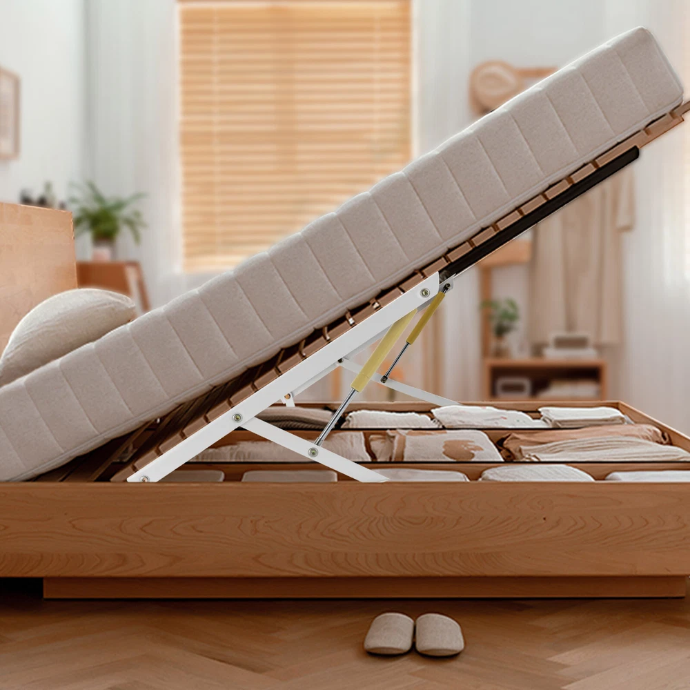This bed lift mechanism is a game-changer for small spaces! The heavy-duty steel construction feels solid and supports up to 44 lbs each, making lifting effortless. Perfect for under-bed storage—no more struggling with flimsy supports. Installation was straightforward, and now my room feels so much more organized. Highly recommend for anyone needing extra storage without sacrificing durability!