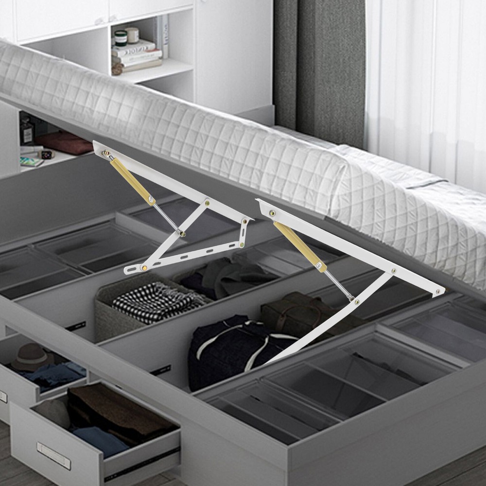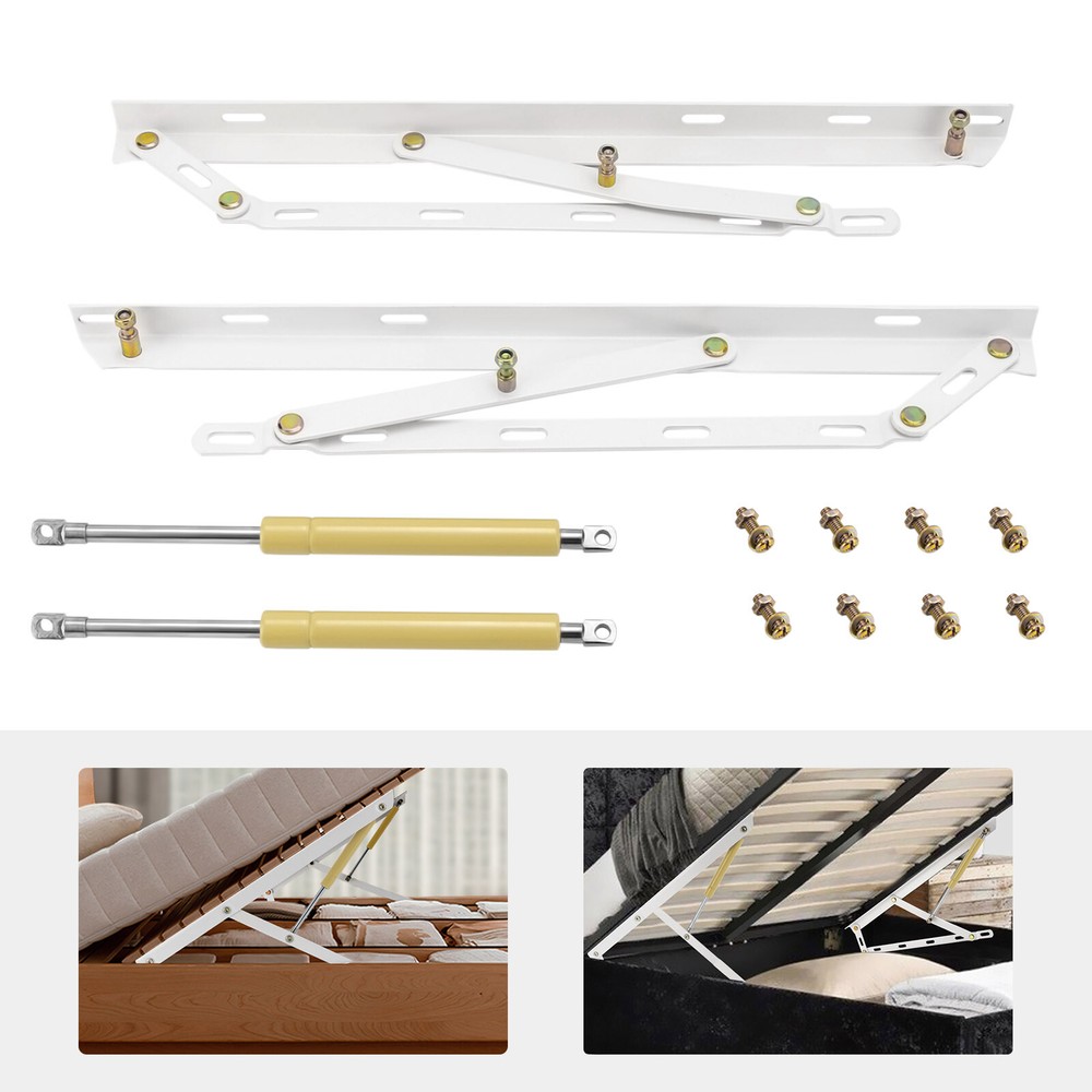 1. This bed lift mechanism is a game-changer for small spaces! The heavy-duty gas springs make lifting effortless, and the sturdy steel construction holds up to 44 lbs each—perfect for maximizing under-bed storage. Super easy to install, and the smooth pneumatic action works like a dream. No more struggling with flimsy supports—this kit is built to last. Fast shipping and great quality make it a must-have upgrade for any bedroom!