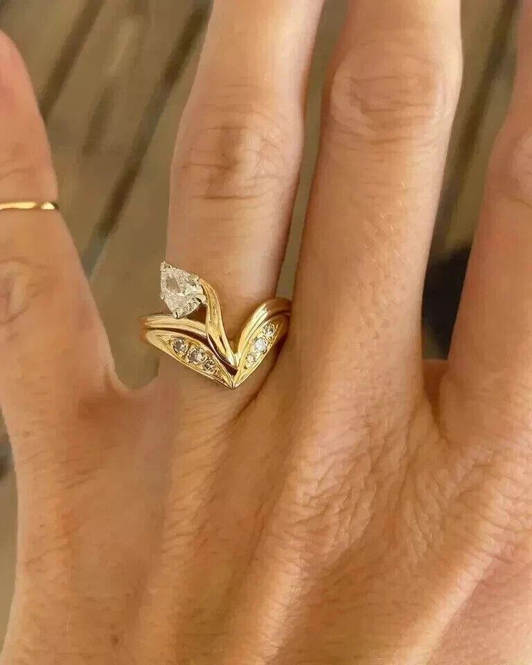Elevate your special moments with this exquisite 2CT Pear Lab Created Diamond Wedding Ring, exquisitely crafted for those who appreciate the timeless beauty of fine jewelry. The radiant white diamonds, set in a luxurious 14K Yellow Gold Plated band, showcase a pear shape that offers a sophisticated and elegant look. With a total carat weight of 2CT and a brilliance that rivals the sun, this ring is a dazzling symbol of your love and commitment. Designed for discerning women, the ring features a floral pattern and prong setting that ensures the diamonds' secure placement. The sterling silver base adds a touch of durability, while the excellent cut grade ensures that every sparkle is nothing less than perfect. Whether it's for an anniversary, birthday, engagement, Mother's Day, or a wedding, this ring is a classic choice that will leave a lasting impression.