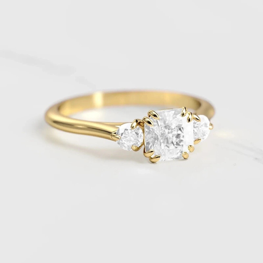 $ 46.4614k Yellow Gold Plated 2Ct Cushion Cut Natural Moissanite Women's Wedding Ring