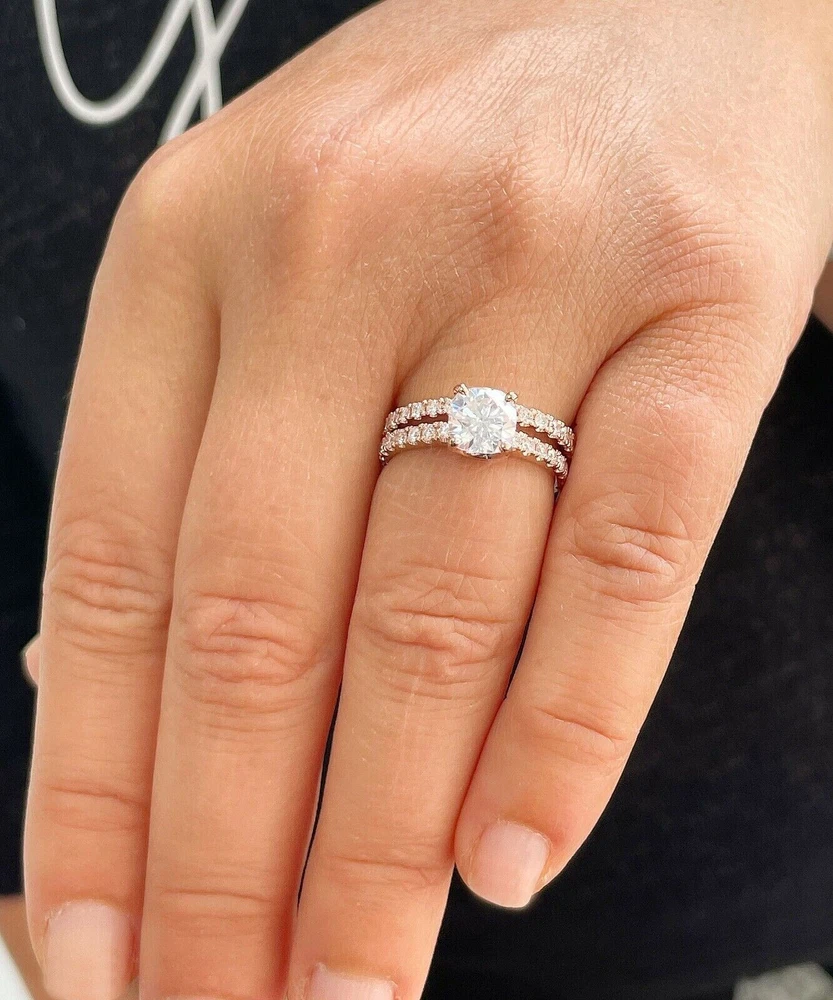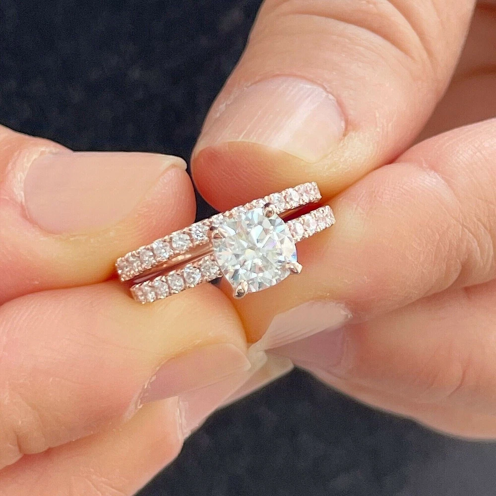 2Ct Cushion Cut Simulated Diamond Delicate Bridal Set Ring 14K Rose Gold Plated