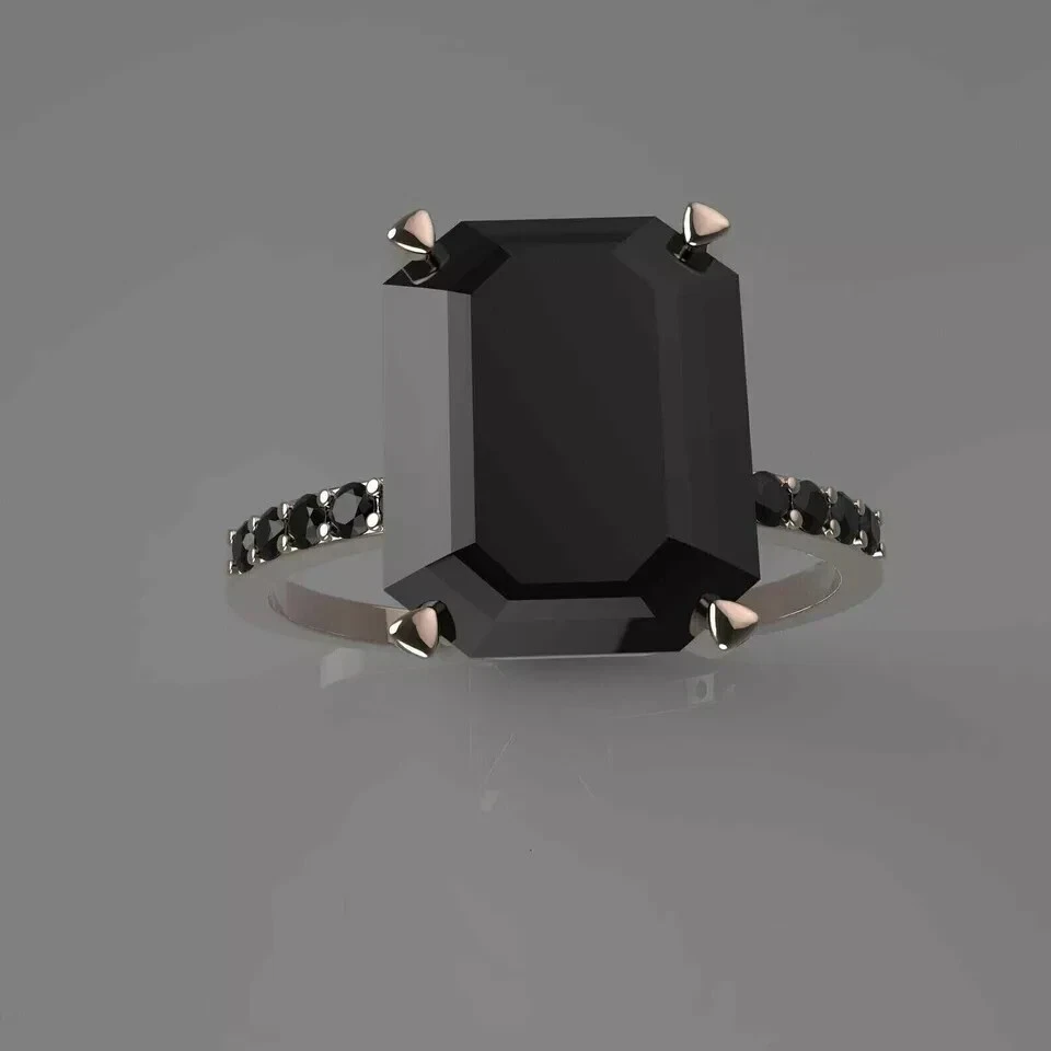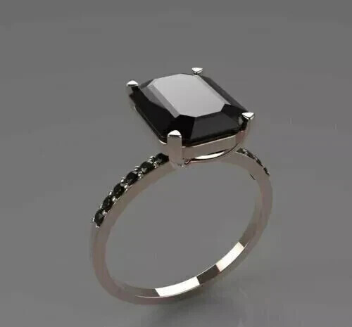 2Ct Emerald Cut Lab Created Black Diamond Engagement Ring 14K White Gold Plated