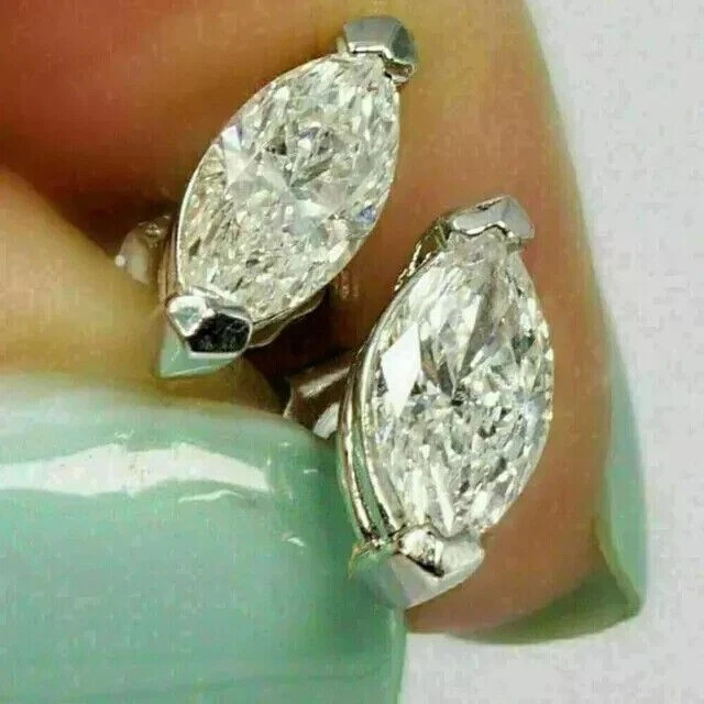 2.Ct Marquise Cut Moissanite Solitaire Stud Earring 14K White Gold Plated Silver