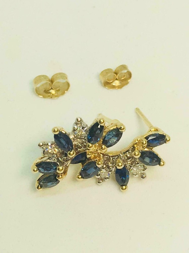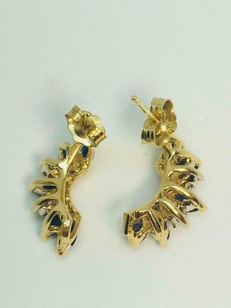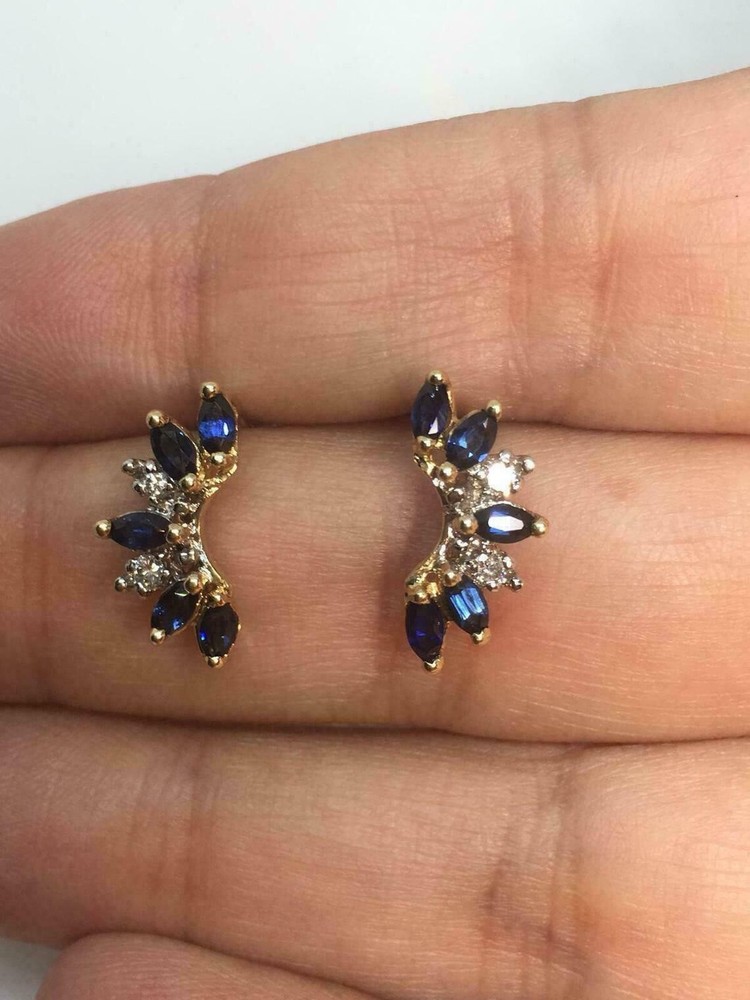 Gemstone Clarity Grade: Slightly Included Customized: Yes Signed: No Main Stone: Simulated Sapphire Antique: No Personalize: No Base Metal: Yellow Gold Plated Seller Warranty: Yes Vintage: No Ear Area: Lobe Era: Undated Wholesale: Yes Main Stone Creation: Simulated Number of Gemstones: Multi Main Stone Color: Blue Setting Style: Prong Handmade: Yes Color: Yellow gtin13: Does Not Apply Main Stone Treatment: Not Enhanced Country of Origin: Unknown Shape: Marquise Metal: Sterling Silver Theme: Beauty UPC: Does Not Apply Metal Purity: 925 Occasion: Anniversary, Birthday, Christening, Christmas, Confirmation/Communion, Engagement, Graduation, Mother's Day, Valentine's Day, Wedding Secondary Stone: Simulated Diamond Style: Dangle/Drop Cut Grade: Excellent Country/Region of Manufacture: India Features: Engraved Brand: sp_jewels MPN: NA Type: Earrings Main Stone Shape: Marquise Closure: Push Back Material: Metal, Gemstone