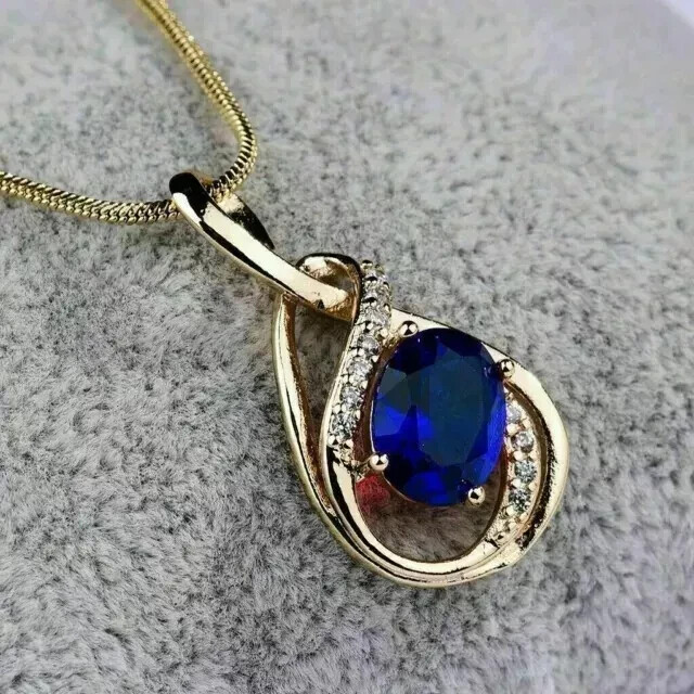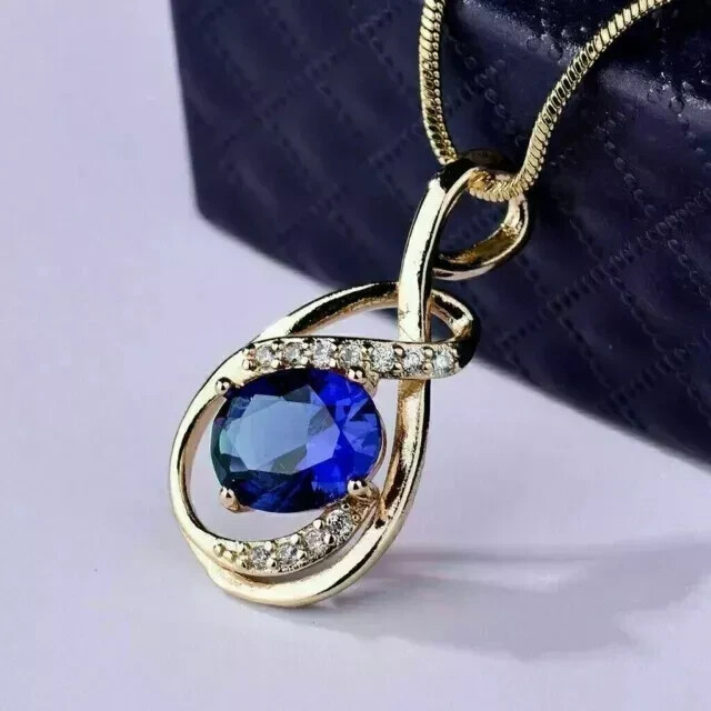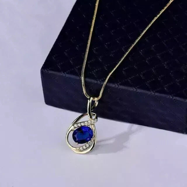 Absolutely stunning pendant! The oval-cut simulated blue sapphire sparkles beautifully, and the 14K yellow gold plating gives it a luxurious look. Love that it can be customized—adding a personal engraving makes it even more special. Just remember to take it off before swimming or using lotions to keep it looking flawless. A perfect blend of elegance and affordability!