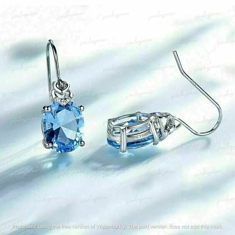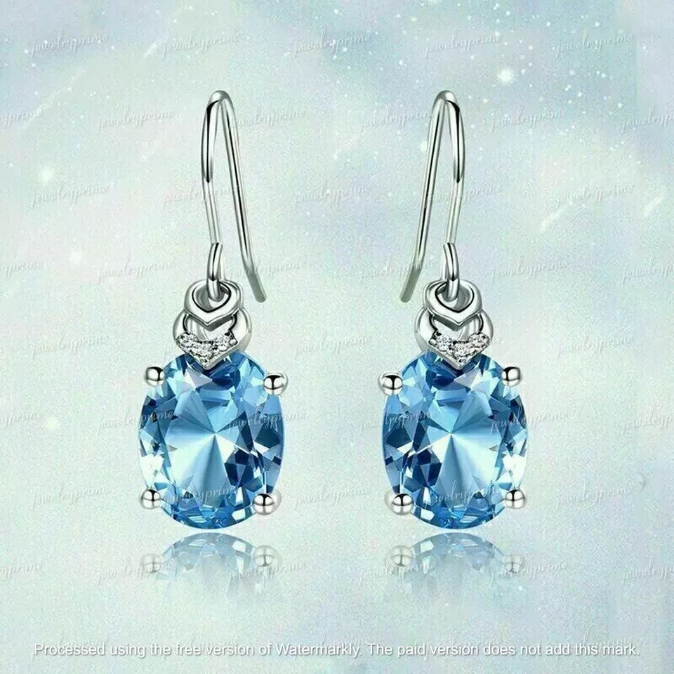 2Ct Oval Blue Topaz Dangle Earrings in 925 Sterling Silver for Women