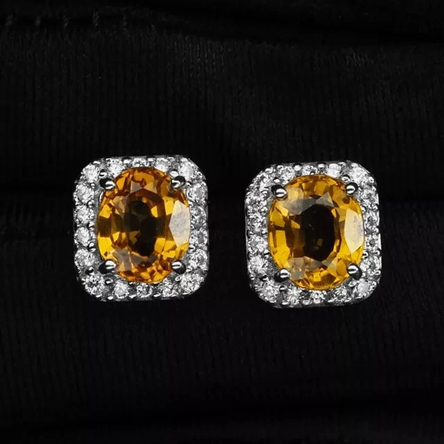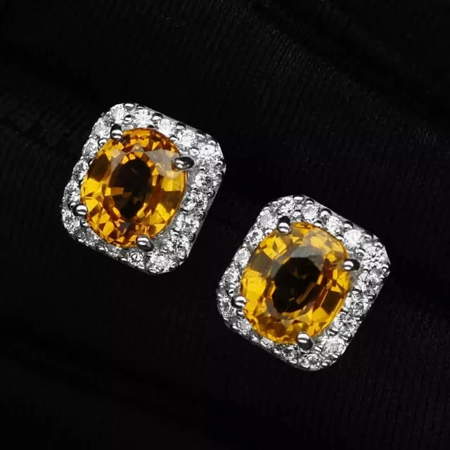 2Ct Oval Cut Simulated Citrine Unisex Christmas Gift Stud 14K White Gold Plated