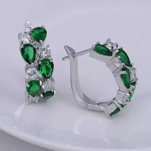 Galaxy_Jewels 2Ct Pear Cut Lab Created Emerald Huggie Hoop Gift Earrings 14K White Gold Plated !!! Buy With Confidence From A Trusted Seller!!! !!! We are here to help you!!! Special care : The White / Yellow / Rose / Black Gold Plating on this item can be effected by many elements. We advise removing this ring when being exposed to any type of substance or chemical. This includes, but not limited to: perfume, hairspray, water, lotions, cleaning products, etc. PAYMENT POLICY 1. We accept payment via Payoneer only. 2. You can also use a credit card for payment by using Payoneer as a guest. 3. Payment is required within 3 days after buying. SHIPPING POLICY 1. We ship worldwide. 2. Handling time is 5 business days after receiving clear payment and ring size confirmation. (Business days excludes Saturdays / Sundays and Public Holidays. 3. Delivery time will be 5-10 working days (which may extend during peak season time). 4. Kindly provide complete address and contact number for hassle free shipping. EXPEDITED SHIPPING Expedited shipping with online tracking and delivery confirmation within 3-5 working days can be availed on request. RETURN POLICY 1 . We accept returns only if there is any manufacturing defect or in transit damage. 2. Refund amount is based on product's price you have purchased for. 3. Please remember to contact us before sending any item back. 4. For incomplete or wrong address we are not liable for any return. 5. If the buyer wants to return the item for his/her own personal reasons ( without any valid reason of item received in damage condition or unless it is defective ) the return shipping charges will be born by buyer. BUYER'S FEEDBACK 1. Your feedback is very important to us. 2. Do remember to give us 5 stars rating if you are satisfied with our product and service. 3. If you have any queries related to the product or service you can expect a reply within 12-48 hours of inquiry. 4. Do contact us before leaving a negative or neutral feedback to get a 100% solution for the dissatisfaction caused to you. CONTACT US Feel Free to contact us for any queries about the product through " Ask Seller a Question " THANK YOU VISIT AGAIN.