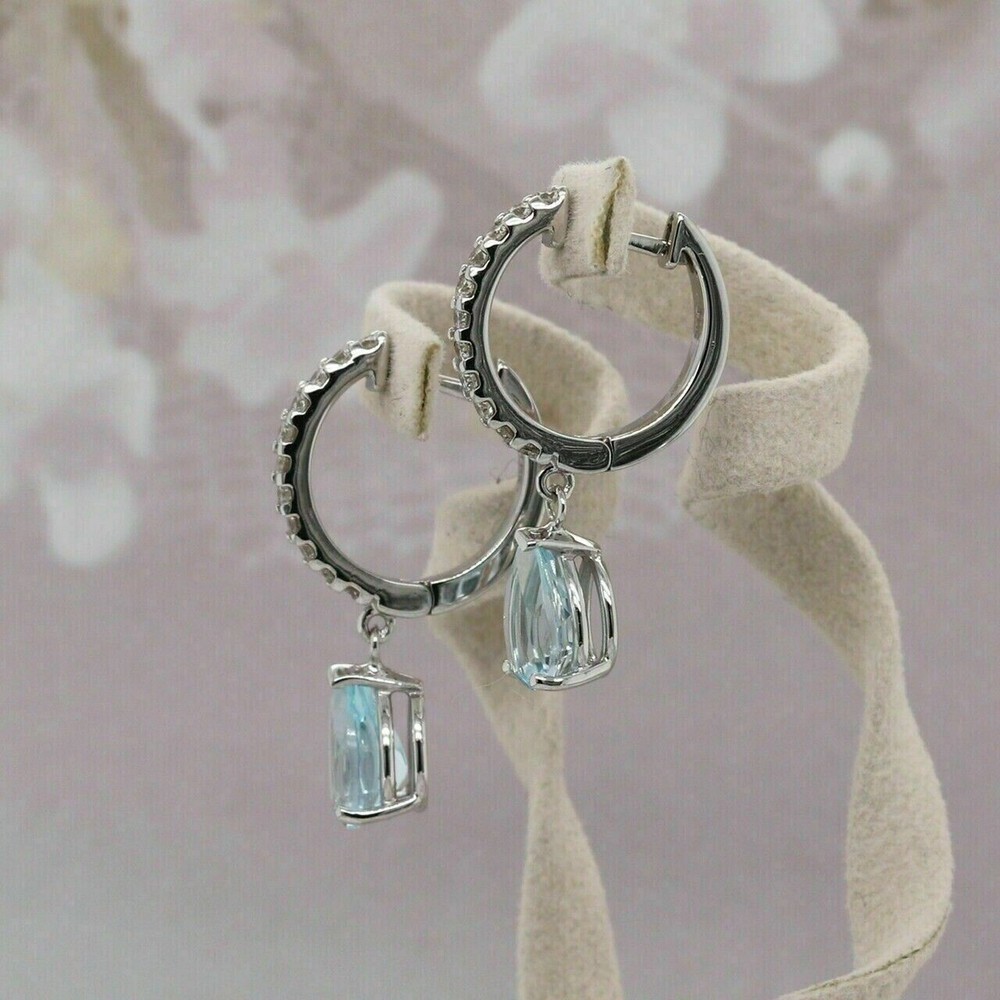 2Ct Pear Cut Simulated Aquamarine Dangle Earrings in 14K White Gold Plating