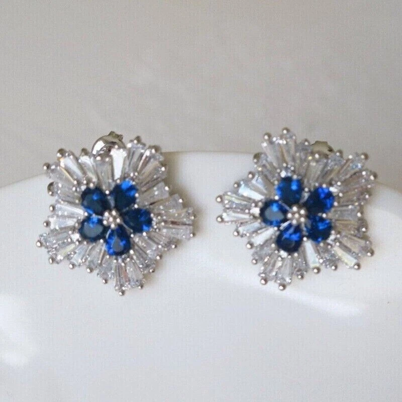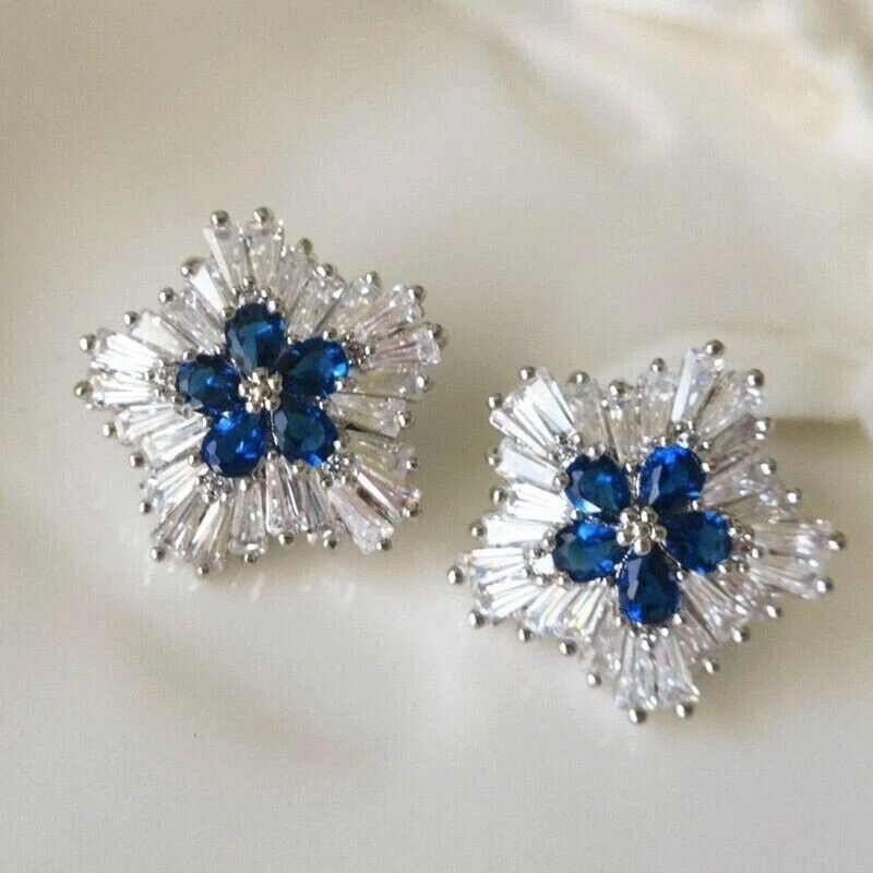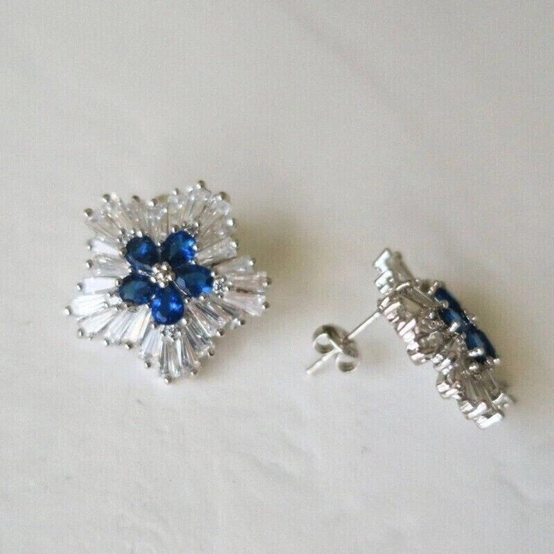 Seller Warranty: Yes Country of Origin: Unknown Metal Purity: 925 Number of Gemstones: Multi gtin13: Does Not Apply Shape: Flower Material: Stone, Gemstone, Metal Color: White Occasion: Anniversary, Birthday, Christening, Christmas, Confirmation/Communion, Engagement, Graduation, Mother's Day, Valentine's Day, Wedding Style: Stud Main Stone Shape: Pear Cut Grade: Excellent Ear Area: Lobe Wholesale: Yes Setting Style: Prong Customized: Yes Brand: excellentstore Antique: No Signed: No MPN: NA Handmade: Yes Secondary Stone: Simulated Diamond Personalize: Yes Main Stone Color: Blue Closure: Push Back Country/Region of Manufacture: India Theme: Beauty Features: NA Item Length: ___ Type: Earrings Main Stone Treatment: Not Enhanced Base Metal: White Gold Plated Metal: Silver Main Stone: Simulated Blue Sapphire UPC: Does Not Apply Vintage: No Main Stone Creation: Simulated Gemstone Clarity Grade: Slightly Included Era: Undated