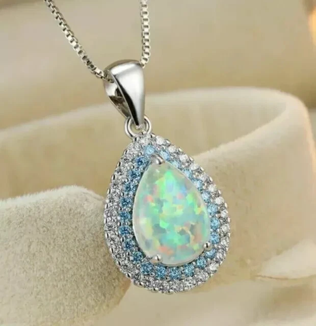 Main Stone: Opal Main Stone Width: As per picture Features: Engraved Style: Pendant Theme: Beauty Main Stone Color: Multicolor Occasion: Anniversary, Birthday, Christening, Christmas, Confirmation/Communion, Engagement, Graduation, Mother's Day, Valentine's Day, Wedding Wholesale: Yes Metal Purity: 925 Type: Pendant Antique: No Country of Origin: India Main Stone Depth: As per picture Brand: karunas-76 Material: Stone, Metal Seller Warranty: Yes Era: Undated Number of Gemstones: Na Handmade: Yes Main Stone Creation: Simulated Color: White Main Stone Treatment: Not Enhanced Customized: Yes Vintage: No Setting Style: Prong Closure: Snap Main Stone Shape: Pear Base Metal: Silver Secondary Stone: Simulated Diamond Signed: No Metal: Sterling Silver Gemstone Clarity Grade: Na Pendant/Locket Type: Charm Main Stone Length: As per picture Cut Grade: Excellent Necklace Length: As per picture Country/Region of Manufacture: India Chain Type: Box Personalize: Yes Pendant Shape: Teardrop
