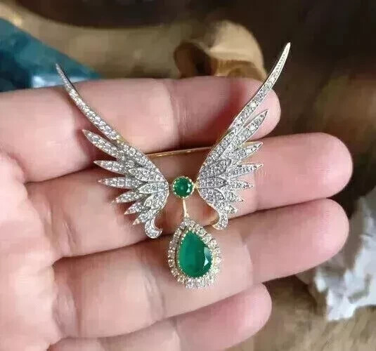 2Ct Pear-Cut Green Emerald Simulated Unisex Wedding Brooch 14K Gold Plated