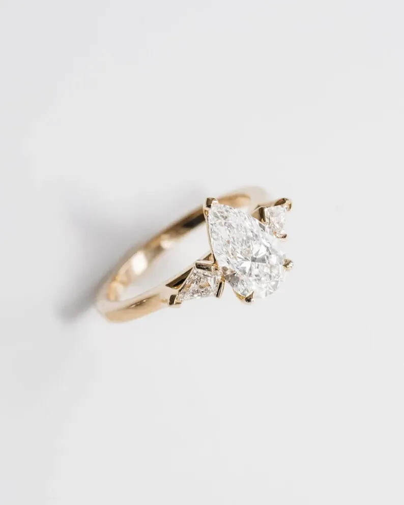 2Ct Pear Cut Natural Moissanite Women's Engagement Ring 14k Yellow Gold Plated