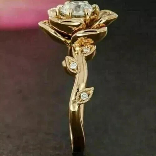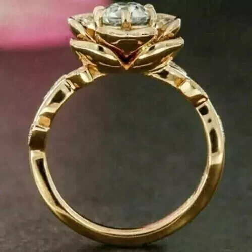 2Ct Round Cut Lab Created Diamond Flower Wedding Ring 14K Yellow Gold Plated