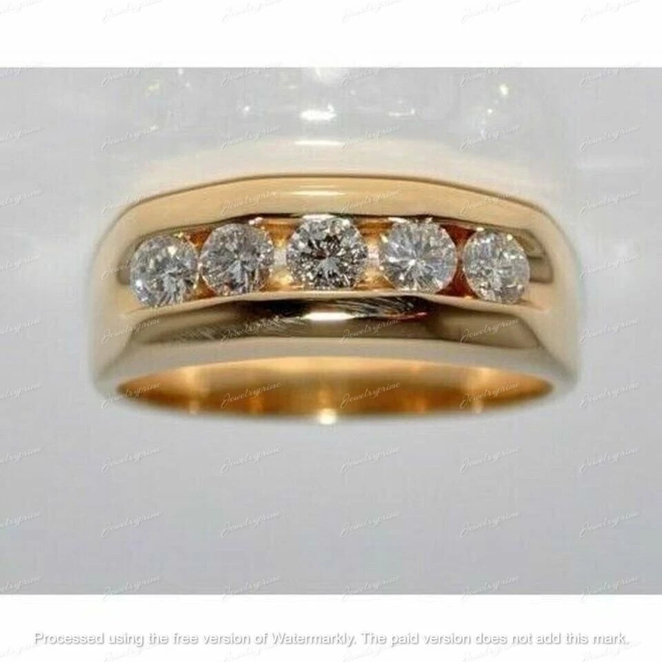 2Ct Round Cut Lab Created Diamond Men's Wedding Band Ring 14k Yellow Gold Plated