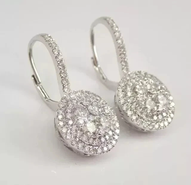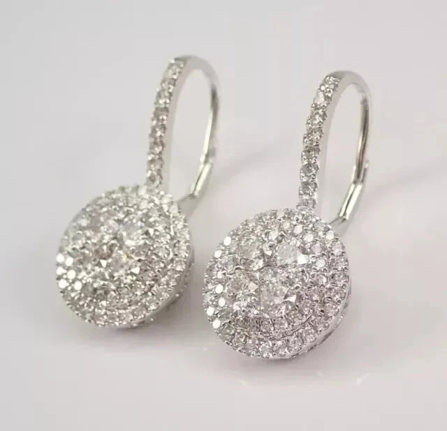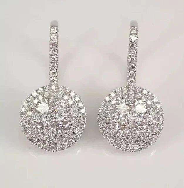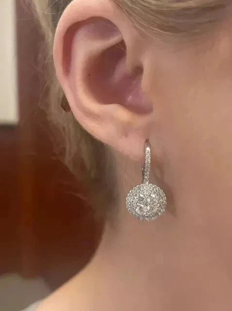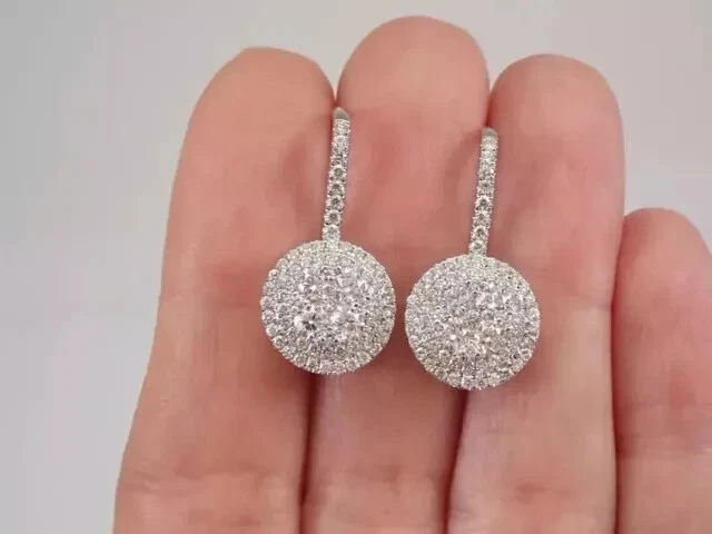 2Ct Round Cut Moissanite Large ClusterDrop/Dangle Earrings 14k White Gold Plated