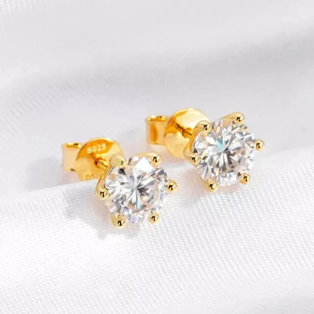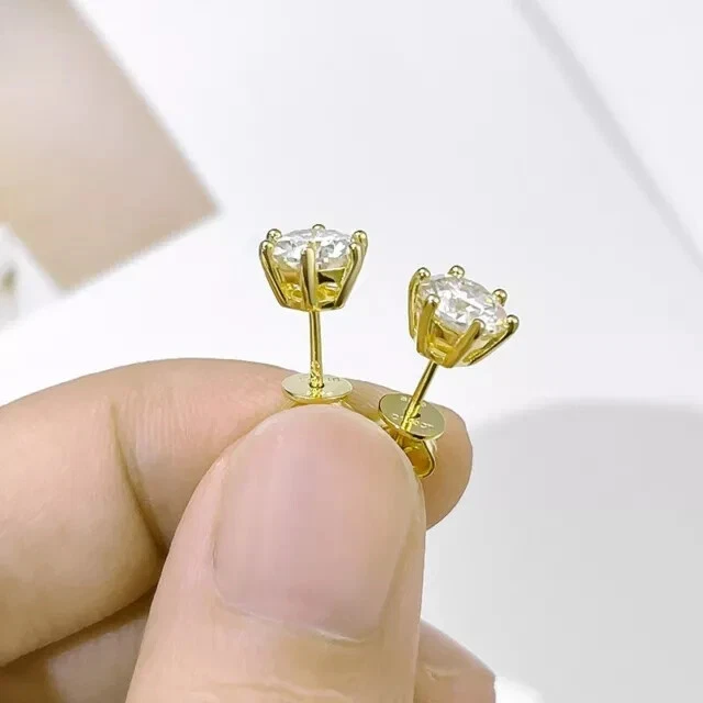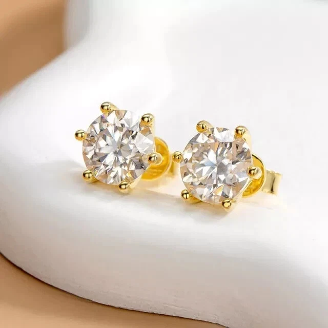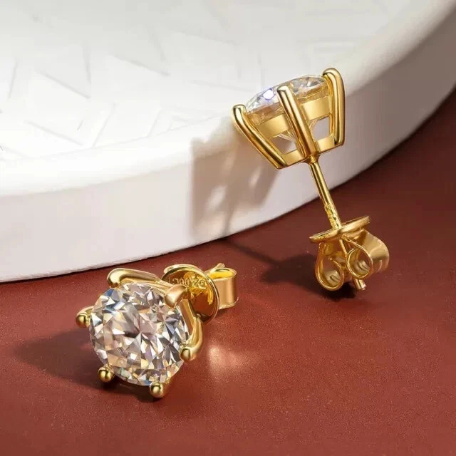 Handmade: Yes Main Stone Depth: As per picture Item Length: As per picture Setting Style: Prong Seller Warranty: Yes Color: Yellow Metal: Sterling Silver Type: Earrings Features: Engraved, Nickel-Free Main Stone Creation: Simulated Era: Undated Main Stone: Simulated Diamond Style: Stud Item Diameter: As per picture Country of Origin: India Country/Region of Manufacture: India Base Metal: Sterling Silver Main Stone Length: As per picture Occasion: Anniversary, Birthday, Christening, Christmas, Confirmation/Communion, Engagement, Graduation, Mother's Day, Valentine's Day, Wedding Cut Grade: Excellent Main Stone Width: As per picture Customized: Yes Brand: karunas-76 Secondary Stone: Diamond Ear Area: Lobe Personalize: Yes Closure: Butterfly Theme: Beauty Wholesale: Yes Gemstone Clarity Grade: Na Number of Gemstones: NA Material: Stone, Metal Main Stone Shape: Round Shape: Rounds Metal Purity: 925 Main Stone Color: White Main Stone Treatment: Not Enhanced