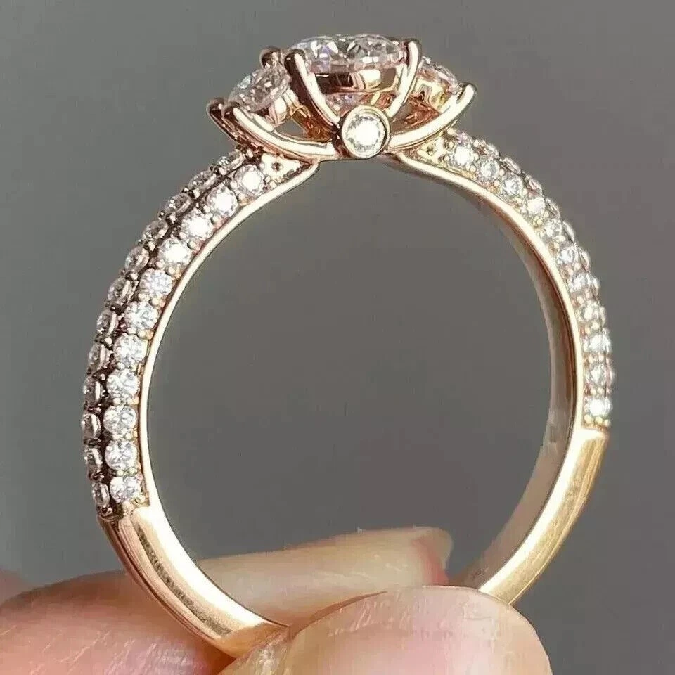 2Ct Round Cut Simulated Diamond Women's Engagement Ring 14k Yellow Gold Plated