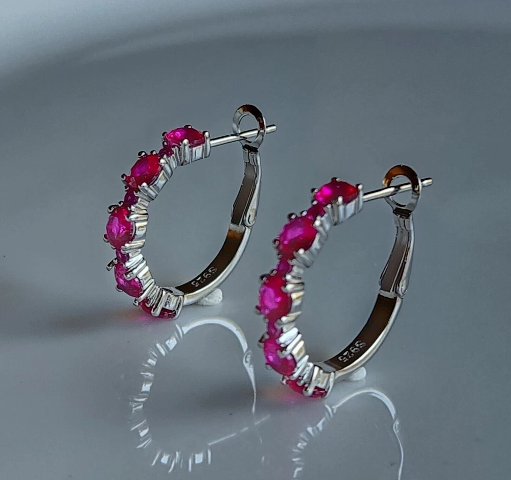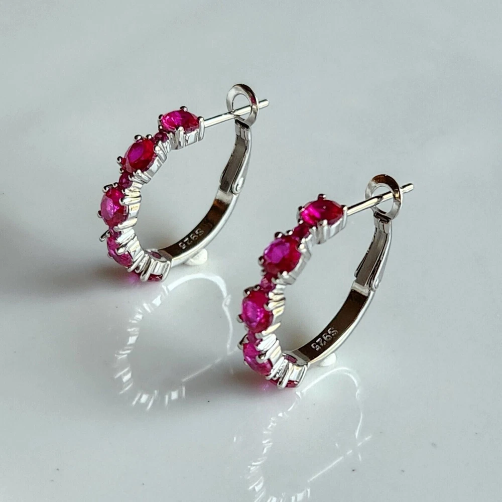 Closure: Omega Back Country/Region of Manufacture: India Number of Gemstones: Multi Theme: Beauty Vintage: No Main Stone Color: Pink Metal: Silver Ear Area: Lobe Item Length: ___ Cut Grade: Excellent Features: NA Material: Gemstone, Stone Type: Earrings Main Stone Shape: Round Wholesale: Yes Base Metal: White Gold Plated gtin13: Does Not Apply Occasion: Anniversary, Birthday, Christening, Christmas, Confirmation/Communion, Engagement, Graduation, Mother's Day, Valentine's Day, Wedding Customized: Yes Main Stone Creation: Simulated Brand: excellentstore Country of Origin: Unknown Main Stone: Simulated Pink Ruby Gemstone Clarity Grade: Slightly Included Era: Undated Main Stone Treatment: Not Enhanced UPC: Does Not Apply Metal Purity: 925 Setting Style: Prong Style: Hoop, Huggie Shape: Round Signed: No Seller Warranty: Yes Color: White MPN: NA Antique: No Personalize: Yes Handmade: Yes