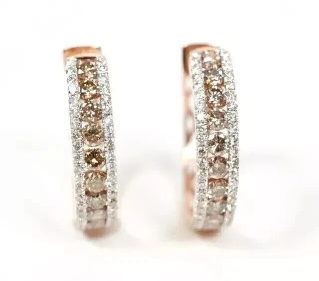 2Ct Round Lab Created Chocolate Brown Diamond Hoop Earrings 14K Rose Gold Plated