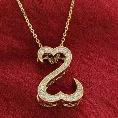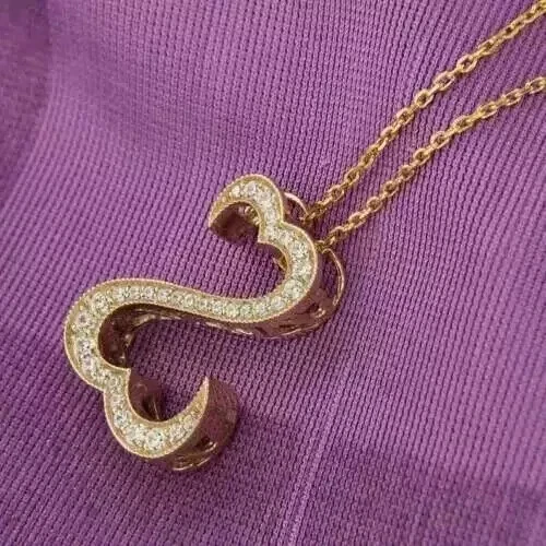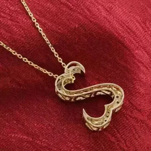 2Ct Round Lab Created Diamond Open Heart Pendant Necklace 14K Yellow Gold Plated