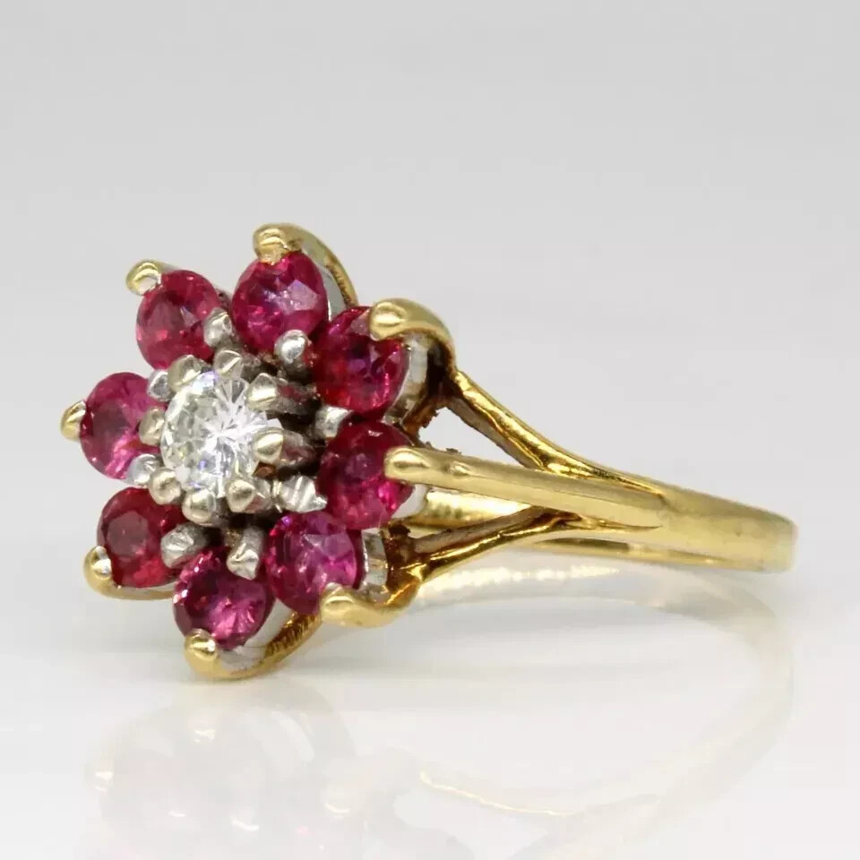 Elevate your jewelry collection with the exquisite 2Ct Round Cut Lab-Created Ruby Wedding Flower Ring, impeccably crafted in 14k Yellow Gold Plating. The centerpiece of this stunning ring is a 2-carat lab-created ruby, boasting a vibrant pink hue and an excellent cut grade that captures the light's dance with every movement. Accompanied by a secondary lab-created diamond, the ring radiates with an elegance that's perfect for any occasion. The ring's solitaire style is complemented by a prong setting, ensuring secure placement of the precious stones. With metal purity stamped at 14k and a gold color that adds a touch of luxury, this piece is a testament to fine craftsmanship. Available in all ring sizes, this ring is a bespoke option for those seeking a unique expression of love or a special treat.