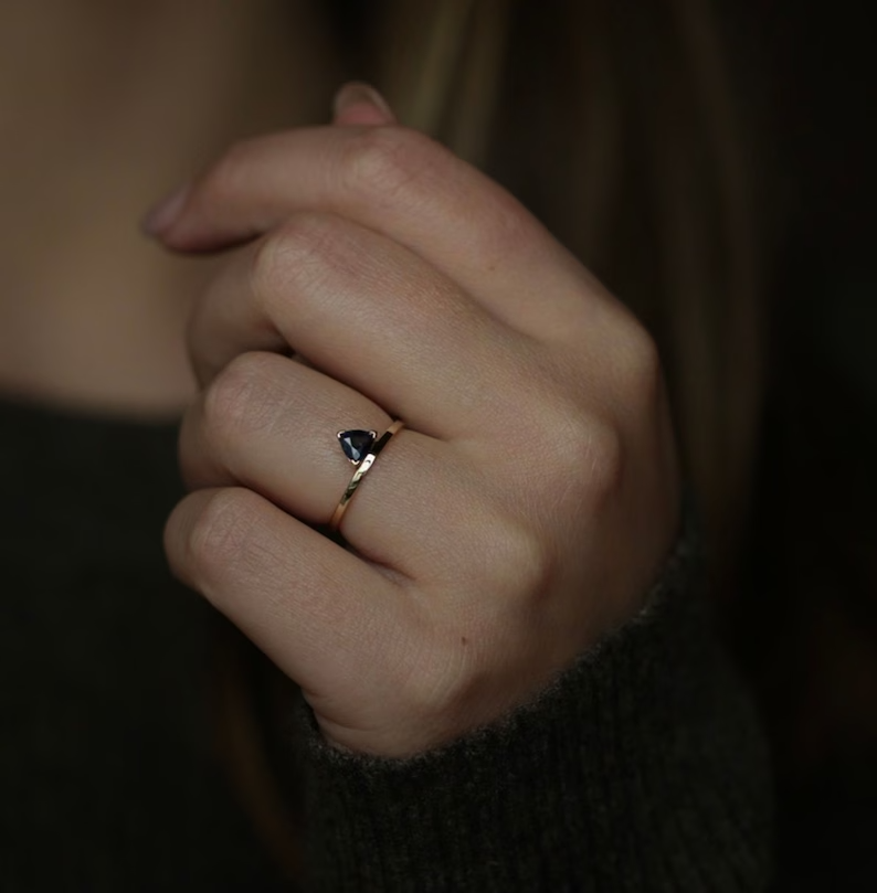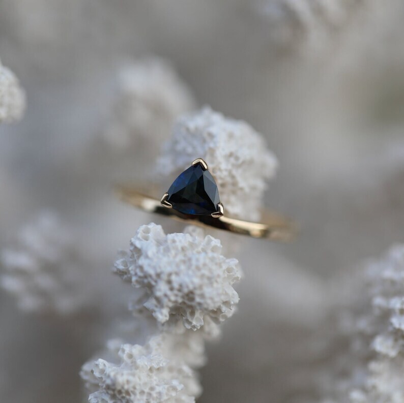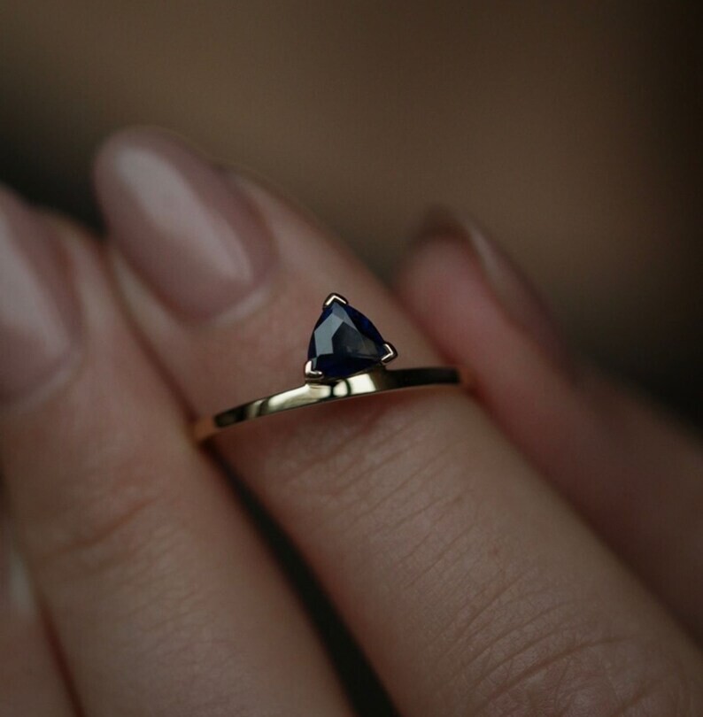 KJ_JEWELRY This handmade Trillion Simulated Sapphire Solitary Wedding Ring features a stunning 2Ct blue sapphire gemstone set in 925 yellow sterling silver. The ring is adjustable and engraved, making it perfect for special occasions like engagements, weddings, anniversaries, birthdays, and more. The eye-clean gemstone is 8mm in width and length, set in a prong style. This beautiful ring can be personalized according to the buyer's requirements, adding a unique touch to this elegant piece from kjj jewelry. Payment Policy 1. We accept payment via PayPal only. 2. You can also use a credit card for payment by using PayPal as a guest. 3. Payment is required within 3 days after buying. Shipping Policy 1. We ship worldwide. 2. Handling time is 5 business days after receiving clear payment and ring size confirmation. ( Business days excludes Saturdays / Sundays and Public Holidays. 3. Delivery time will be 5-10 working days (which may extend during peak season time). 4. Kindly provide complete address and contact number for hassle free shipping. Expedited Shipping Expedited shipping with online tracking and delivery confirmation within 3-5 working days can be availed on request. Return Policy 1. We accept returns only if there is any manufacturing defect or in transit damage. 2. Refund amount is based on product's price you have purchased for. 3. Please remember to contact us before sending any item back. 4. For incomplete or wrong address we are not liable for any return. 5. If the buyer wants to return the item for his/her own personal reasons ( without any valid reason of item received in damage condition or unless it is defective ) the return shipping charges will be born by buyer. Buyer's Feedback 1. Your feedback is very important to us. 2. Do remember to give us 5 star rating if you are satisfied with our product and service. 3. If you have any queries related to the product or service you can expect a reply within 12-48 hours of inquiry. 4. Do contact us before leaving a negative or neutral feedback to get a 100% solution for the dissatisfaction caused to you. Contact Us Feel Free to contact us for any queries about the product through " Ask Seller a Question " Thank You Visit Again.