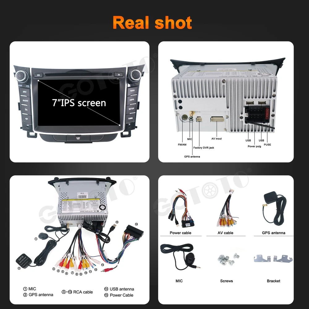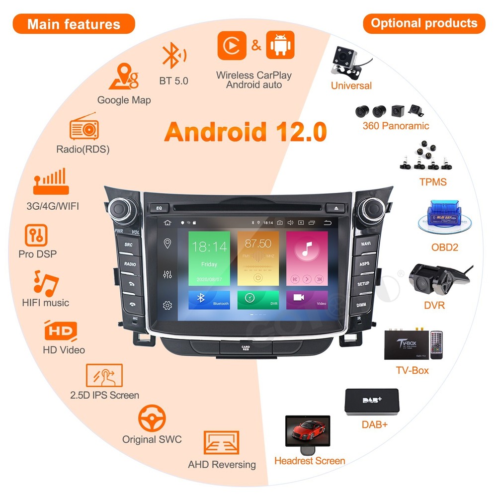 Features: 【 Compatible models and super system 】 Fit for Hyundai I30 Elantra GT 2011-2017 , Based on Android 1 2 . 0 OS, with PX6 CPU, 4GB RAM and 64 GB ROM with more compatibility, enjoy faster response and smoother user experience. It's plug and play, no need to cut wire. Support the original car interface and Android interfac , Keep original car function. 【GPS and WiFi】 Built-in GPS module, you can download various navigation software, including Google Maps, Waze, IGO.Built-in WIFI, support 4 G , you can download app as you want .The split-screen design allows two applications to be used in parallell, you can enjoy watching movies online, browsing the website while using GPS navigation . 【Multifuction】 Built-in Carplay / Android Auto, Bluetooth makes hands-free calls while driving, Mirror Link allows any content from Android (Miracast) or iOS (AirPlay) smartphone to be mirrored to this car stereo, and supports SD/USB music/video,HDMI output, Steering wheel control, AM / FM RDS radio. 【Convenient operation】 13 inch 1920*1080 IPS screen , Built-in carplay, your smartphone can interface with the car stereo (wireless and wired), and you can give commands to the car stereo through voice control, but also Control this head unit using existing steering wheel control buttons, easy operation makes your journey faster and safer. 【Professional sales services】 Manufacturer outlet store with 1 years Warranty + Cooperating with car factory directly + Life time after-sell service. If you have any questions, pls feel free to contact us by ebay chat , we will answer your questions enthusiastically within 24 hours. Warm tip After purchasing, in order to ensure the accuracy of the order, please inform me the information of your car in time after placing the order, such as the following two points: 1. The model and year of the car 2. A picture of you car dashboard About Us We have been deeply involved in the auto parts industry for more than eight years,We mainly deal in various high-end and low-end car radios and various auto accessories. We sell them at the most favorable price and provide the best after-sales service,Choosing us is not only about our products Excellent quality, price, and first-class technical service, I believe we will give you a good shopping experience. Contact Us Before purchasing, if you have any questions, you can contact us via eBay Contact Seller Message, or email us with your name or eBay ID and item number. After receiving the package, if you have any installation and use problems, please feel free to contact us and send us the installation wiring video or pictures so that our technicians can find and solve problems more intuitively. Delivery Details 1.We promise that we will ship item WITHIN 5 WORKING DAYS estimated shipping time,We will deliver the goods quickly through DHL. After shipping, it is expected that the delivery will be delivered to your address within 7-15 days,Please allow few more days during busy season. 2.Free shipping for customers with a valid residential or commercial address within the Contiguous 48 United States (PO Boxes address may require additional charges). 3.P.O. Boxes, APO/FPO addresses, Alaska, Hawaii, Puerto Rico, Guam, U.S. Virgin Islands, Northern Mariana Islands, American Samoa, and other countries may require additional shipping fees.Please contact us for detailed shipping charges. 4.We will not accept request to change shipping address once payment has been made,Please confirm your shipping address is up-to-date and valid. Return 1.If you have the idea of returning the product, please contact us as soon as possible, we will have a professional technical team to answer your questions, if the problem can not resolved in the end, you can consider returning/exchanging the product. 2. Please return the product to us in strict accordance with our return requirements, and ensure that the product and all accessories are placed in the box. Once we receive the returned product,we need to open the box and inspect the product. Refunds or exchanges are processed within 24 to 48 working hours.