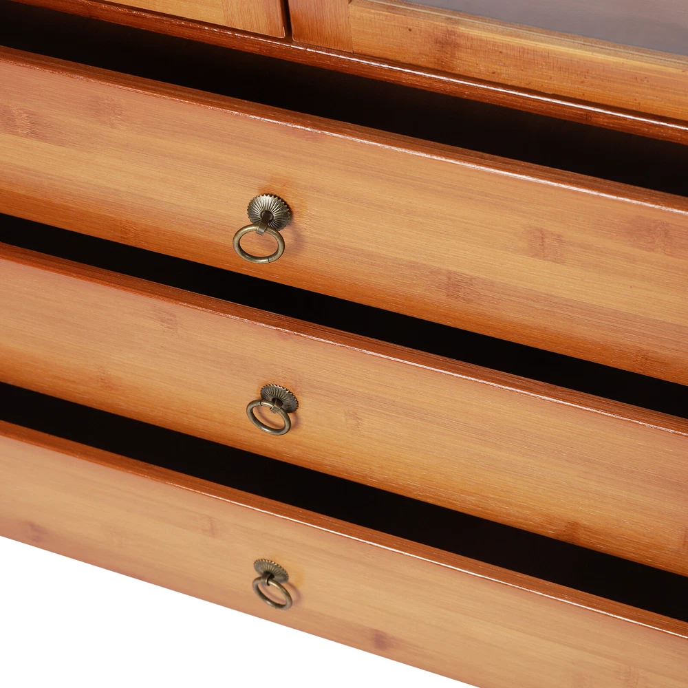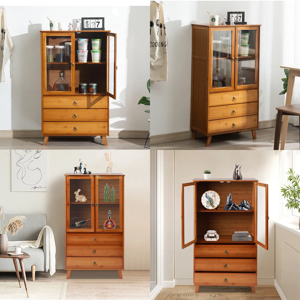 Specification Color: Brown Assembly Required: Yes Material: Bamboo, MDF, Acrylic, Hardware Process: Spray Paint ( Environmental Varnish ) Mounting Type: Floor Mount Number of Tiers: 5 The Max. Load of Each Tier: About 10kg/22.05lbs (Under Uniform Force) Drawer Height: 12cm/4.7in Leg Height: 10cm/3.9in Cabinet Door Height: 58.5cm/23in Cabinet Door Inner Laminate Height: 29cm/11.4in Product Size: 60*29*110cm/ 23.6*11.4*43.3 in Package Included 1 * Wood Cabinet 1 * Chinese Manual All Accessories for Installation Bamboo Kitchen Buffet Hutch Storage Cupboard Cabinet Server Sideboard w/ Drawer welcome~ Description The afternoon sunshine, a book and a cup of tea are the meaning of life. With dual cabinet doors and three-drawer design, this wood cabinet can organize your items in order and let you experience simple life. It can adapt to any home style, adding elegance to your room. The raised design of the four legs provides strong support for the product while also making it easier to clean. Specification Color: Brown Assembly Required: Yes Material: Bamboo, MDF, Acrylic, Hardware Process: Spray Paint ( Environmental Varnish ) Mounting Type: Floor Mount Number of Tiers: 5 The Max. Load of Each Tier: About 10kg/22.05lbs (Under Uniform Force) Drawer Height: 12cm/4.7in Leg Height: 10cm/3.9in Cabinet Door Height: 58.5cm/23in Cabinet Door Inner Laminate Height: 29cm/11.4in Product Size: 60*29*110cm/ 23.6*11.4*43.3 in Package Included 1 * Wood Cabinet 1 * Chinese Manual All Accessories for Installation Key Features Multiple Layout: The double-tiered design, closed space of three drawers, and the open top platform can provide you with ample storage space to meet your various storage needs. High Stability: The sturdy structure of the rectangular body and the 4 legs at the bottom provide stability and durability to the product. Each tier can easily withstand 22.05 pounds of cargo under even force. Waterproof Surface: The eco-friendly varnished surface of the product is moisture resistant. Considerate Design: The design of acrylic doors and drawers can protect your products from light exposure, temperature, dirt and dust so that they can keep clean and tidy. Raised Foot Design: The raised support foot can effectively avoid moisture and make the center of gravity of the product more stable. The height of 3.9 inches can allow the sweeping robot to enter and exit freely so that the bottom space can be cleaned more thoroughly. Easy to Assemble: All necessary hardware and electronic manual in English (If you need it, please contact the customer service staff) can help you complete the installation quickly. Details Exquisite Accessories: The high-quality round design plus metal material add a metallic luster to the product and bring comfortable feel. Well-designed Door: The cabinet door with magnetic suction design is easy to close and can prevent items from falling out. In addition, the clear acrylic door can block dust and make interior items visible at a glance. Application The product can be used in the kitchen, bathroom, bedroom, and living room, and as a sideboard, storage cabinet, etc. Notes Bamboo wood products are from natural materials, inevitably there will be different textures, bamboo knots, bamboo halos, bamboo gaps, bamboo spots, and other phenomena, which will not affect the beauty and use. Please do not use corrosive cleaning agents or hard objects to clean, it is recommended to use a soft cloth to wipe. Bamboo wood products should not be placed in the sun for a long time to avoid cracking and deformation, and should not be placed in a dark and humid place for a long time to avoid mildew. Please keep accessories away from babies, children, and pets during installation. Please allow the slight color difference caused by the shooting light and the 1-3 cm error due to manual measurement, and make sure you do not mind before ordering. Payment Delivery details Terms of sales About us Contact us Payment We accept ebay payment 。 Fees such as import duties, taxes are not included in the item price or shipping costs. These charges are the buyer's responsibility. Delivery details Shipping: 2-9 working days to: USA Terms of sales We maintain high standards of excellence and strive for hundred percent customer satisfaction. Feedback is very important to us. We hope that you contact us immediately before you give neutral or negative feedback, so that we can address your concerns. It is impossible to address issues if we do not know about them! About us Your satis faction is our ultimate goal. We work hard to earn your trust and future business. Our certified technicians have tested each item before shipping. The unit comes with 1 year limited warranty on all manufacturing defects. a) If you receive a defective item, you may return it or ask for a discount. Please contact us within 14 days after you receive the package. b) What you returned must be intact and in its original packaging as re? u. Customer is responsible for shipping costs of the returned item. c) We will cover the cost of shipping back t with the shipping rate indicated in the registration page. We will send you a new unit or refund the full payment you paid. Thank you. Contact us Business Hour Business Hour: Monday To Friday: 8:30 AM to 5:00 PM (Beijing China time) Due to time zones, our reply to your questions may not be immediately. But within above working time, we will reply your email within 24 hours. If it's non-workdays, please kindly be patient and wait till Monday. Please contact us with ebay message. Please feel free to contact us if you have any questions. Monday To Friday: 8:30 AM to 5:00 PM (Beijing China time) Due to time zones, our reply to your questions may not be immediately. But within above working time, we will reply your email within 24 hours. If it's non-workdays, please kindly be patient and wait till Monday. Please contact us with ebay message. Please feel free to contact us if you have any questions. On Jul 28, 20