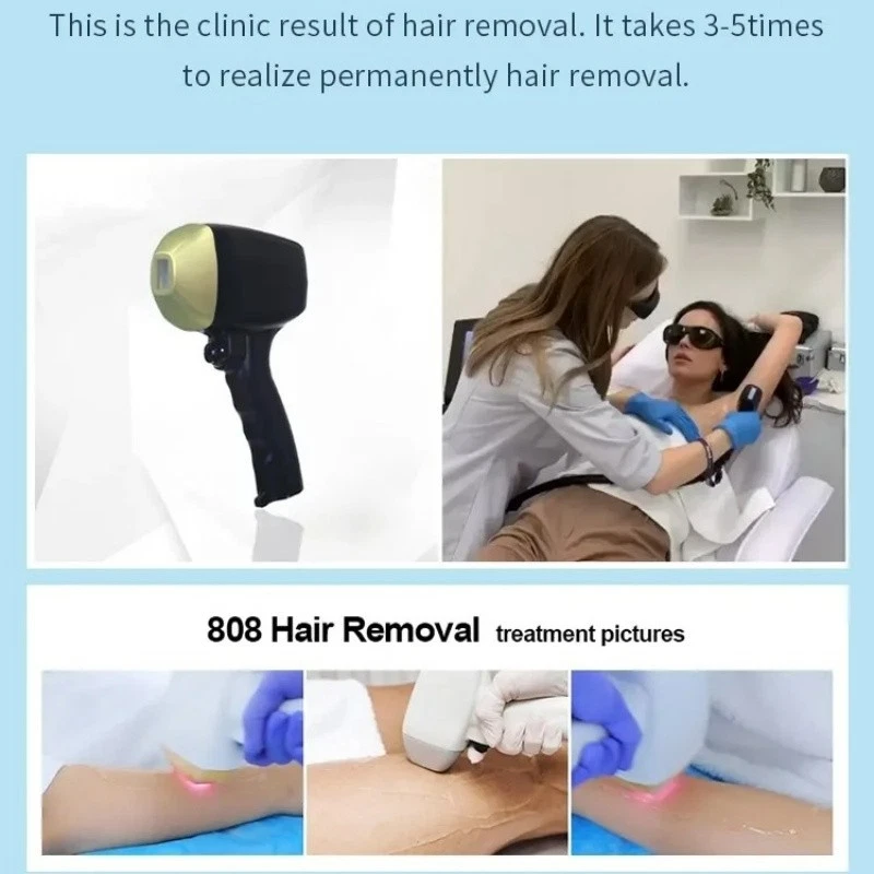 Diode Laser Hair Removal Machine | 2IN1 808+Picosecond System Diode Laser Hair Removal Machine 2IN1 808+Picosecond | 3 Wavelengths (755/808/1064nm) | Ice Cooling System Welcome to First Beauty Salon Boutique – the only brand owner, guaranteeing product quality and providing comprehensive after-sales service for worry-free shopping. Shop Smart, Shop Fast America Local stock | 3-9 day delivery 🚚 Fast, reliable shipping from US warehouses. 1-year warranty ✅ Shop worry-free – we’ve got you covered. Huge selection 🔍 Find everything you need in one place. Free home delivery 🏡 No hidden fees – delivered straight to your door. Technical Specifications Design Style: Portable Color: Black Handle: 1 Handle Laser Technology 808 Diode Laser + Picosecond Laser 3 Wavelengths: 755nm, 808nm, 1064nm Display 15.6-inch Color Touch Display Spot Size 12mm×25mm (with nose nozzle) Adjustable Settings Pulse width: 1-400 ms Energy: 1-380 J/cm² Frequency: 1-10 Hz Compatibility Languages: English, OEM (Spanish, Italian, German, French, Turkish) Skin Type: I-VI Skin Type Power & Cooling Laser module power: 1600W (OEM 2000W) Cooling: ICE Semiconductor Display Cooling Sapphire TEC Key Benefits 1 High energy output ensures no pigmentation risk – visible results after the first treatment, effective on all hair types. 2 Long laser pulse width enables heat accumulation in hair follicles for permanent hair reduction. 3 Safe for skin – minimal scattering, no damage to sweat glands, scar-free with zero side effects. 4 Ice-cooling system provides instant epidermal anesthesia for a painless experience. 5 Advanced thermostatic water cycle prevents overheating and ensures stable performance. 6 Self-checking and auto-protection mechanisms guarantee operational stability. 2IN1 Multifunctional System 808 Diode Laser Hair Removal Painless, ice-cooling technology for full-body hair removal. Targets hair follicles with 755nm/808nm/1064nm wavelengths for long-lasting results on all skin types (I-VI). Picosecond Laser Therapy Treat pigmentation issues: tattoo removal (red/green/black ink), freckles, sunspots, age spots. Also improves skin texture: whitening, wrinkle reduction, pore shrinking. Treatment Principles Hair Removal Principle Selectively targets melanin in hair follicles. Damages stem cells around follicles, inhibiting hair growth. Irreversible follicle destruction for permanent results (after multiple sessions). Picosecond Laser Principle Picosecond laser energy penetrates the skin layer. Shatters pigment into tiny particles. Particles are metabolized naturally, leaving no downtime or side effects. Whole Body Application Suitable for men & women, covering all body areas with unwanted hair or pigment issues. Facial hair, lip hair, beard Armpit, chest, hand hair Bikini line, leg hair Probe Function Introduction 532nm Probe Treats exogenous & endogenous pigment: red/light brown/green tattoos, freckles. 1064nm Probe Targets dark brown/bluish violet/black tattoos, deep pigmentation. Black Doll Probe Skin rejuvenation: shrinks pores, balances oil, tightens skin, reduces fine lines. Product Gallery After-Sales Service & Support Home Beauty Helper understands the importance of reliable after-sales support, which is why we offer a comprehensive package for our products. This includes free spare parts, online support, and video technical assistance, ensuring that you are never left in the dark. Free Spare Parts 24/7 Online Support Video Tutorials Local Warehouse Support