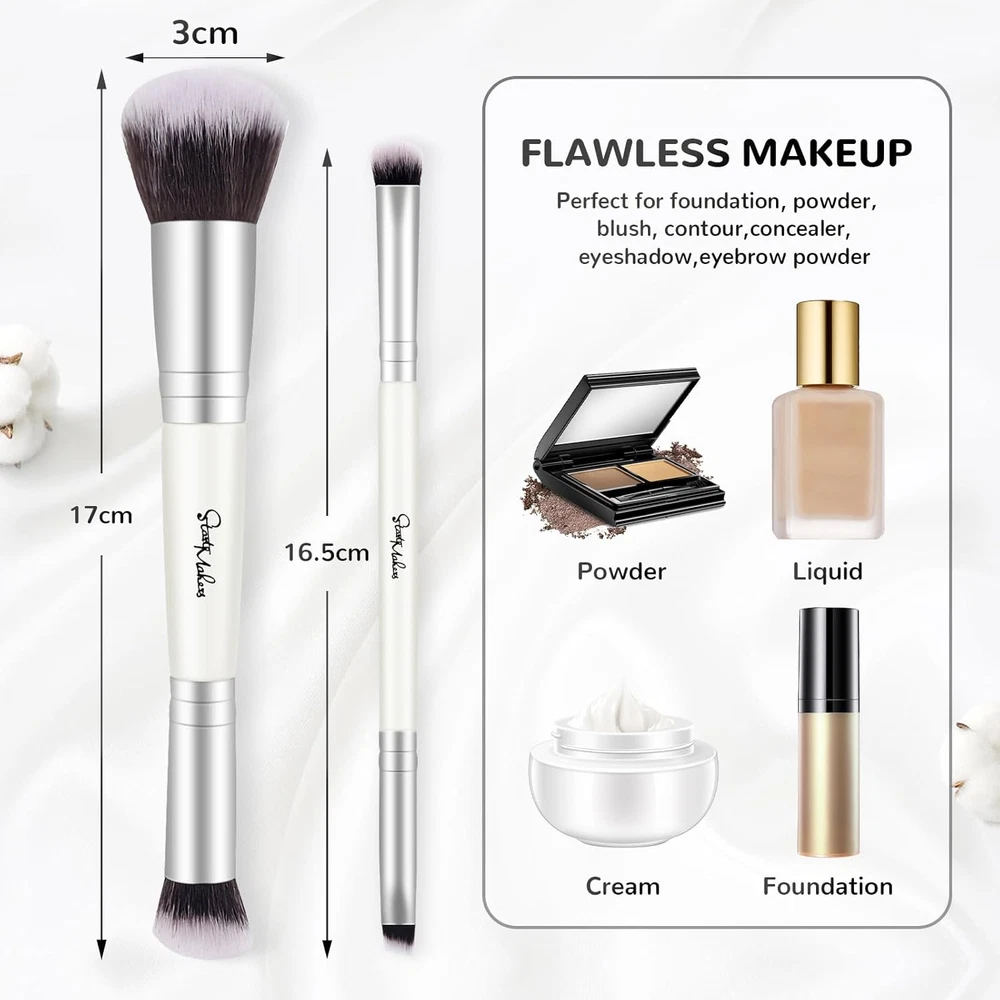 Store New Arrivals Add to Favorite View Feedback Contact Fast deliveries to the customer's home Quality customer service John Make the customers happy! 2-In-1 Makeup Brushes Dual-Ended Contouring Foundation Brush 2 Pack Concealer Brush Face Eyebrow Eyeshadow Brush for Liquid, Powder, Buffing, Blending (White) Description 【VERSATILE MAKEUP BRUSHES】START MAKERS multifunctional dual-ended makeup brushes set combine with 4 practical makeup functions, it meets your needs for foundation brush, concealer brushes, eyebrow brushes, and eyeshadow brushes. This face brushes set is suitable for beginners and professional makeup artists who figure out makeup quickly and obviously get a more efficient beauty makeup experience. 【SOFT BRISTLES PRACTICAL DESIGN】100% vegan and cruelty-free premium synthetic bristles are dense, elastic, and non-shedding. Foundation brush with such integrate closely soft skin-friendly fibers provide you a silky feel to the skin and are suitable for all skin types. Uniform shading by strong powder grasping power makes 4 type sized brush head apply cosmetics to your face effectively, especially harder-to-reach areas such as nosewing and eye socket. 【SHINY HANDLE & STURDY TUBE】 These two dual-ended makeup brushes are comes with shiny sturdy aluminum handle and tube. The handle of stippling brush is connected to sturdy aluminum tubes to ensure that the bristles will be no-shedding and the brush body does not break. Ergonomic lightweight smooth grip wooden handle is dotted with silver metallic luster combined in classic white color. 【FLAWLESS MAKEUP FULL COVERAGE】Use our foundation make up brushes as a buffing brush to apply powder, cream, and liquid products more evenly and ensure a more flawless finish. Only a small quantity of foundation on the brush is needed for the best results without trapping or absorption of the product. It's perfect to achieve streak free finish, patch free application and full coverage. 【PORTABLE MAKEUP TOOLS & GIFT IDEAS】Both the large foundation makeup brush and the small blending brush are in a portable compact size (length 6.7inches/ weight 45g), also incredibly easy to clean. The creative double-ended makeup brush is suitable for all beginners as well as makeup artists, and real an special gift to your important person on birthdays, Christmas, Valentine's Day, and other festivals. Product Description Foundaiton Brush Concealer Brush Contour Brush Set Double Ended Makeup Brushes with 4 Different Brush Heads Makeup Brushes for Liquid Makeup Cream Makeup Powder Makeup DOUBLE ENDED MAKEUP BRUSHES Foundation and Concealer Brush Set Dual-ended makeup brushes, 2pcs 2-in-1 travel makeup brush set allows you to switch between different makeup applications without needing multiple brushes. With Gift Box, great gift for your lover, girls, mom, sister, friends on Valentine's day, Women's day, birthday, Mother's day, anniversary, Christmas and so on. Perfect for applying liquid foundation, cream foundation, contour, concealer, blush, eyeshadow. Your Makeup Brushes and Tools Choice! Add to Cart Add to Cart Add to Cart Add to Cart Add to Cart Add to Cart Customer Reviews 4.6 out of 5 stars 1,511 4.6 out of 5 stars 1,511 3.8 out of 5 stars 9 4.4 out of 5 stars 1,196 4.4 out of 5 stars 1,196 4.6 out of 5 stars 1,511 4.1 out of 5 stars 175 Price $7.99 $ 7 . 99 $7.99 $ 7 . 99 $7.99 $ 7 . 99 $6.99 $ 6 . 99 $6.99 $ 6 . 99 $7.99 $ 7 . 99 — Color White Black & Red Pink and Yellow Black Blue Blue White Counts 2Pcs 2Pcs 2Pcs 1Pc 1Pc 2Pcs 550Pcs Material Premium synthetic bristles Double side design, gift box ABS handle, synthetic bristles Wooden Handle & Dense Bristles Wooden Handle & Flat Top Shiny Handle w Silver Powder Cotton Good Quality ✔ ✔ ✔ ✔ ✔ ✔ ✔ Makeup Foundation and Concealer Brush Friendly to beginners makeup Ultra thin liquid makeup brush For beginners & makeup artists Good for liquid cream makeup Travel and Daily Makeup Large quantity and versatile Color White Material weasel_hair Brush Length 17 Centimeters Handle Material Aluminum Age Range (Description) Adult Recommended Uses For Product Face Makeup Skin Type Oily, Combination, Sensitive, Dry, Normal Item Form Wand Package Dimensions 7.09 x 1.26 x 1.26 inches; 1.41 ounces Number of Pieces 2 ABOUT US We offer the best prices around on high quality products. Our E-store includes media such as books, movies, music and games while offering electronics, toys, sporting apparel, clothing, tools, general home, garden items and more. SHIPPING We are always working hard to ensure your package arrives as soon as possible. Please understand that some factors like weather, high postal traffic, and the performance of shipping companies are outside of our control. We offer free shipping to the lower 48 states and ship within 2 business days of payment, usually sooner. We do not accept P.O. Boxes. Please provide a physical address. For shipping outside of the continental USA, we only use eBay's Global Shipping Program. The item is shipped to KY and then sent to the rest of the world. International customers are responsible for all duties and taxes. Continue to 'check out' to calculate costs for shipping the item to your country. Messages regarding eBay's Global Shipping Program MUST be directed at eBay EXCLUSIVELY. RETURNS We offer a 30-Day Return Policy on items in which you are not completely satisfied with. You have the option of a full-refund or an exchange of the item. No returns are available on items shipped outside of the USA PAYMENT We accept PayPal. CONTACT US This page content is yet to come Please ad us to your favorite seller and visit again later Thank You CUSTOMER SATISFACTION We try our very best to make sure every customer is completely satisfied. If there's a problem, message us! We're happy to help. WE ACCEPT