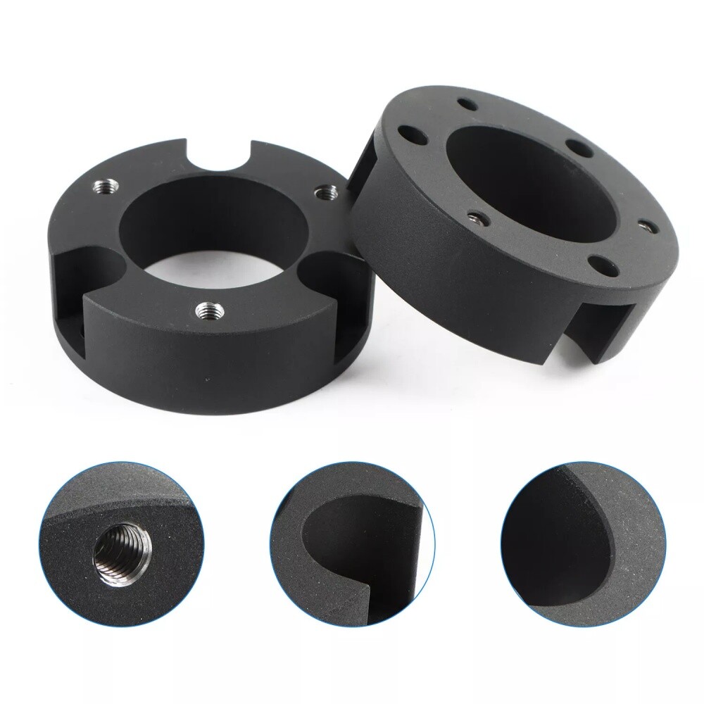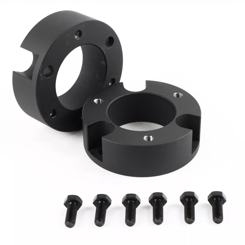 2" Front Leveling Lift Kit for 1999-2006 for Toyota Tundra 4WD Description: This lift kit will raise the front of your Tundra by a true 2". Can be installed in about 1 1/2-2 hours and does not require strut/coil disassembly like other kits. They are CNC machined out of billet aluminum and then powdercoated black to match you factory suspension. The quality of this kit cannot even be compared to welded spacers that crack over time. Fitment: Fits Toyota Tundra: 1999-2006 4WD 1999-2006 2WD Note: Lift spacer thickness and lift is not a 1 to 1 ratio due to the suspension geometry. Please check the pictures carefully before buying to determine whether these products are what you need. Communication is the best way to solve the problem. If you have any problems a fter purchasing, please contact us in time before opening return or case.