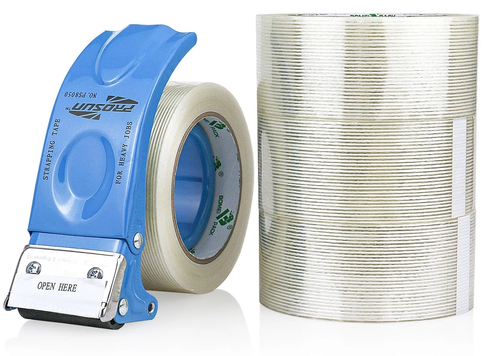 This strapping tape is a game-changer for heavy-duty packaging! The fiberglass reinforcement makes it super strong—perfect for securing bulky items like furniture or appliances. The dispenser makes application quick and easy, and the adhesive sticks firmly without peeling. I’ve used it for moving and shipping, and it holds up way better than regular packing tape. The 3-roll set with the metal dispenser is a great value. Highly recommend for anyone needing extra-strong sealing power!