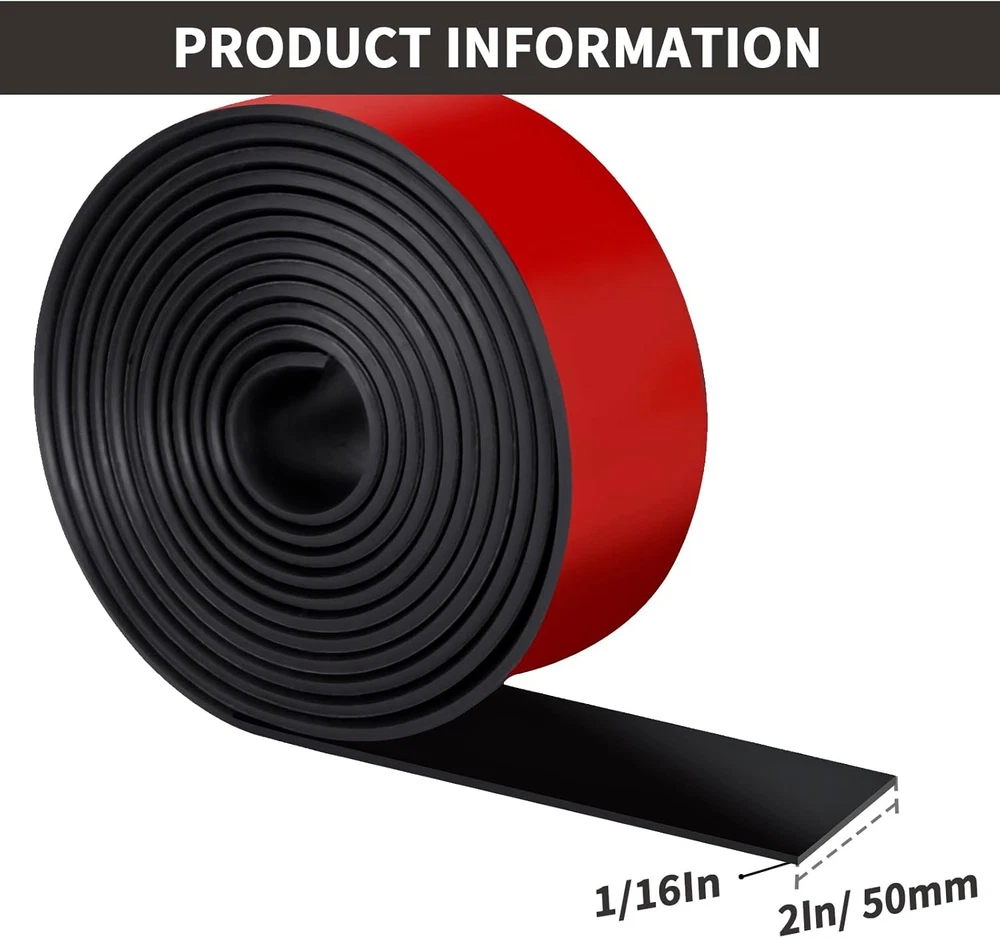Self Adhesive Rubber Strips, Solid 2" W x 1/16" T x 120" L Product Details Brand: Heonay Material: Rubber Product Dimensions: 120"L x 2"W Item Thickness: 0.06 Inches Number of Items: 1 Manufacturer: Heonay Unit Count: 10.0 Feet Part Number: Heay-rub111 Item Weight: 15.1 ounces Item model number: Heay-rub111 Size: 2" W x 1/16" T x 120" L Style: Self Adhesive Item Package Quantity: 1 Measurement System: English Batteries Included?: No Batteries Required?: No Brand: Heonay Material: Rubber Product Dimensions: 120"L x 2"W Item Thickness: 0.06 Inches Number of Items: 1 【Quality Rubber Material】The rubber strip is made from premium solid rubber material, ensuring it remains tough and durable even under heavy weight. Compared to ordinary sponge or foam strips, our adhesive backed rubber are more tear-resistant and long-lasting. 【With Strong Adhesive Backing】The rubber gasket material with a strong adhesive backing can be easily attached to surfaces without the need for additional tools. 【Enhanced Performance】The rubber strips with adhesive backing is wear-resistant and durable, can effectively reduce unwanted friction between objects. 【Easy to cut】The rubber padding with adhesive can be easily cut to any desired length with scissors. Their exceptional flexibility allows them to seamlessly conform to any surface or shape, making them the perfect solution for tight spaces or irregular surfaces. 【Multifunctional Usage】This rubber adhesive pads are perfect for various purposes such as DIY gaskets, seals, flooring, anti-vibration cushioning and anti-slip applications. It also provides shock absorption, sound insulation and pressure resistance while protecting floors with its cushioning properties. Self Adhesive Rubber Strips Solid Neoprene Rubber Strips with Adhesive Backing Self Stick Rubber Gasket