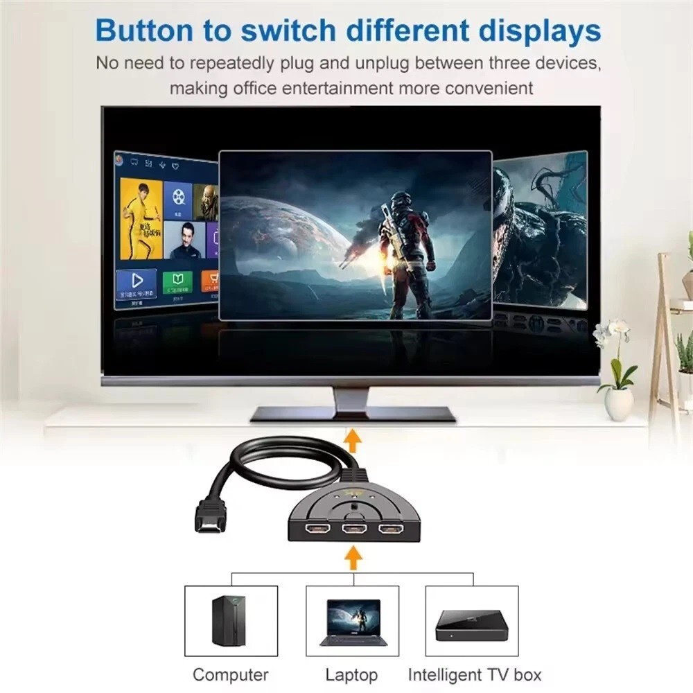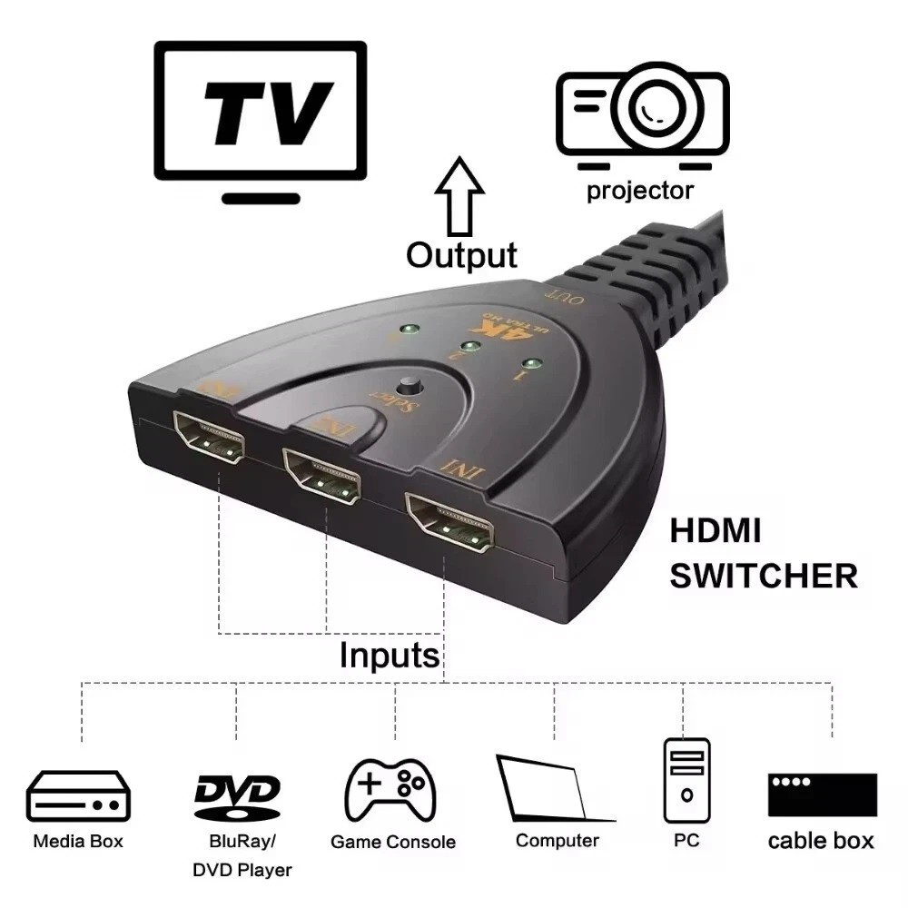 Product Description Product Description This 3-in-1 HDMI switcher is the perfect solution for users who need to connect multiple HDMI devices to a single display and easily switch between them. This HDMI switcher is a high-performance HDMI switcher that connects to 3 HD 4K video sources with multi-channel digital audio and video, and sends HD audio and video signals to 1 HD display device by switching the outputs at will via remote control or manual keys, with a resolution of up to 4K*2K and downward compatible with 1080P. It not only allows cyclic switching with the keys, but also includes remote control switching as well as intelligent recognition Switching. That is to say, as long as you in the signal source equipment for power switching, this switch will automatically respond. Used for connection, signal amplification, multi-screen conversion, multi-screen selection between digital HDTV with HDMI interface, plasma display, LCD monitor, set-top box, DVD player, Blu-ray player, digital camcorder, audio/video receiving device, home video recording, satellite system, Xbox360, PS/3 player, projector system. Features ✔ Easily switch between any 3-way 4K HD HDMI signals; ✔ Supports 480p, 720p, 1080i, 1080p, 1920x1200, 3840*2160 resolutions; ✔ Supports extension of all HDMI devices through HDMI signals; ✔ Supports high definition video,, clear, and up to 4K*2K resolutions; ✔ Fully supports HDMI1.4, compatible with HDMI version 1.3, compatible with HDCP; ✔ Good compatibility for DVD,STB,PS3,PC,DV,DLP Video Projector with HDMI interface and other HDMI devices; ✔Status indicator, real-time understanding of each port movement. ✔ Quick installation, easy operation, plug and play, fashionable and trendy design, exquisite and compact, easy to carry. Intelligent function 🔹 After the switcher is powered on, it will automatically select the source device that is powered on, the priority of selection is: Input1>Input2>Input3 🔹 When powering on a source device or plugging that source device into the switcher, it automatically selects that source device. 🔹When turning off the power of a source device or unplugging it from the switcher, it will automatically select the next source device whose power is turned on, and the priority of selection is: Input 1>Input 2>Input 3. Specifications Product Name: HD HDMI Switcher 3 into 1 Color: Black Video Amplifier Bandwidth: 2.5 Gbps; Input Video Signal Level: 1.2 volts p-p; Input DDC Signal Level: 5 volts p-p (TTL); Single Connection Signal Range: 2160p; HDMI Input/Output Connector: HDMI Class A 19-pin Female Power Consumption: 5W Packing List HDMI Switcher 3 into 1 * 1 Payment Returns Contact Us Shipping Feedback 1. We only accept eBay payments. 2. All payments must be made within 3 days after auction won. Item may be returned for refund or replacement within 30 days of the purchase date. Returned merchandise must be unused, in original packaging and include all accessories. Shipping costs are non-refundable. Please do not hesitate to leave us your 5 Star ★★★★★ of DSR positive feedback if you are satisfied with our products, delivery or services. If you have any question or unsatisfied with your purchase, please email us first to get a better solution before you leave a neutral or negative feedback. We work hard to make sure every customer 100% satisfied and resolve any problem for you. Please email us first in the following situations: 1. The item can't work properly. 2. The item broken on the post. 3. You bought or received the wrong items. 4. You have not received your shipment within the period. 5. Before you give us neutral or negative feedback. 6. Before you open a case/return on eBay. All questions will be replied within 24 hours (Except Saturday and Sunday or holidays). Thank you for your kindness! 1. eBay Payments Confirmed Addresses Only. 2. No Delivery to Alaska and Hawaii or PR. 3. No P.O. Box and APO/FPO Delivery. 4. Tracking Number will be provided. 5. Domestic shipping is within the 48 Contiguous States of United States, the delivery time is between 2 and 8 days. Items will be shipped by UPS, USPS or Fedex within 3 business day after receiving full payment. 6. International shipping is from China, the delivery time is between 10 and 30 working days. As a seller, Positive Feedback is very important to us. We try our best to let our customers to be happy. If you have any question about your order, please contact us by email and let us know. We are willing to do our best to make up for it. Thank you very much for supporting our store! Payment 1. We only accept eBay payments. 2. All payments must be made within 3 days after auction won. Returns Item may be returned for refund or replacement within 30 days of the purchase date. Returned merchandise must be unused, in original packaging and include all accessories. Shipping costs are non-refundable. Please do not hesitate to leave us your 5 Star ★★★★★ of DSR positive feedback if you are satisfied with our products, delivery or services. Contact Us If you have any question or unsatisfied with your purchase, please email us first to get a better solution before you leave a neutral or negative feedback. We work hard to make sure every customer 100% satisfied and resolve any problem for you. Please email us first in the following situations: 1. The item can't work properly. 2. The item broken on the post. 3. You bought or received the wrong items. 4. You have not received your shipment within the period. 5. Before you give us neutral or negative feedback. 6. Before you open a case/return on eBay. All questions will be replied within 24 hours (Except Saturday and Sunday or holidays). Thank you for your kindness! Shipping 1. eBay Payments Confirmed Addresses Only. 2. No Delivery to Alaska and Hawaii or PR. 3. No P.O. Box and APO/FPO Delivery. 4. Tracking Number will be provided. 5. Domestic shipping is within the 48 Contiguous States of United States, the delivery ti