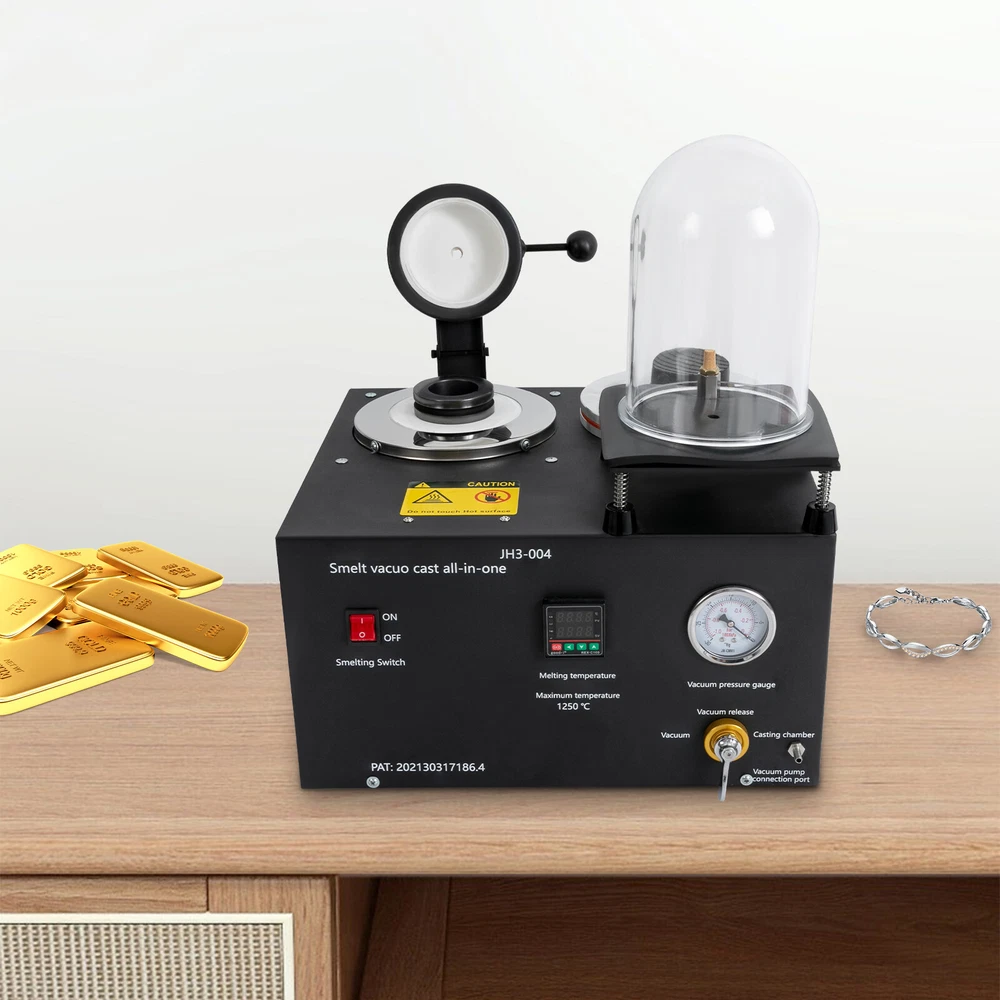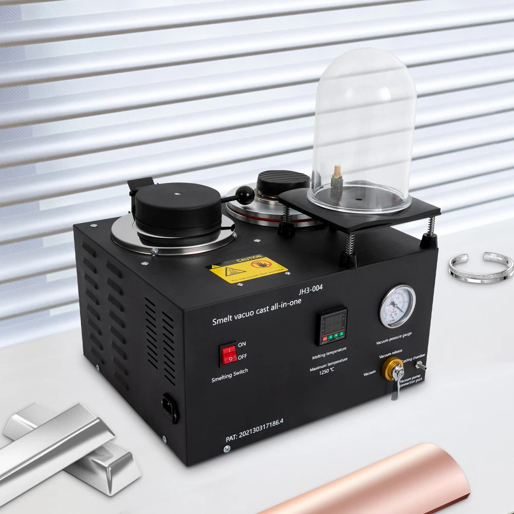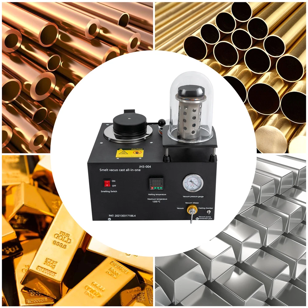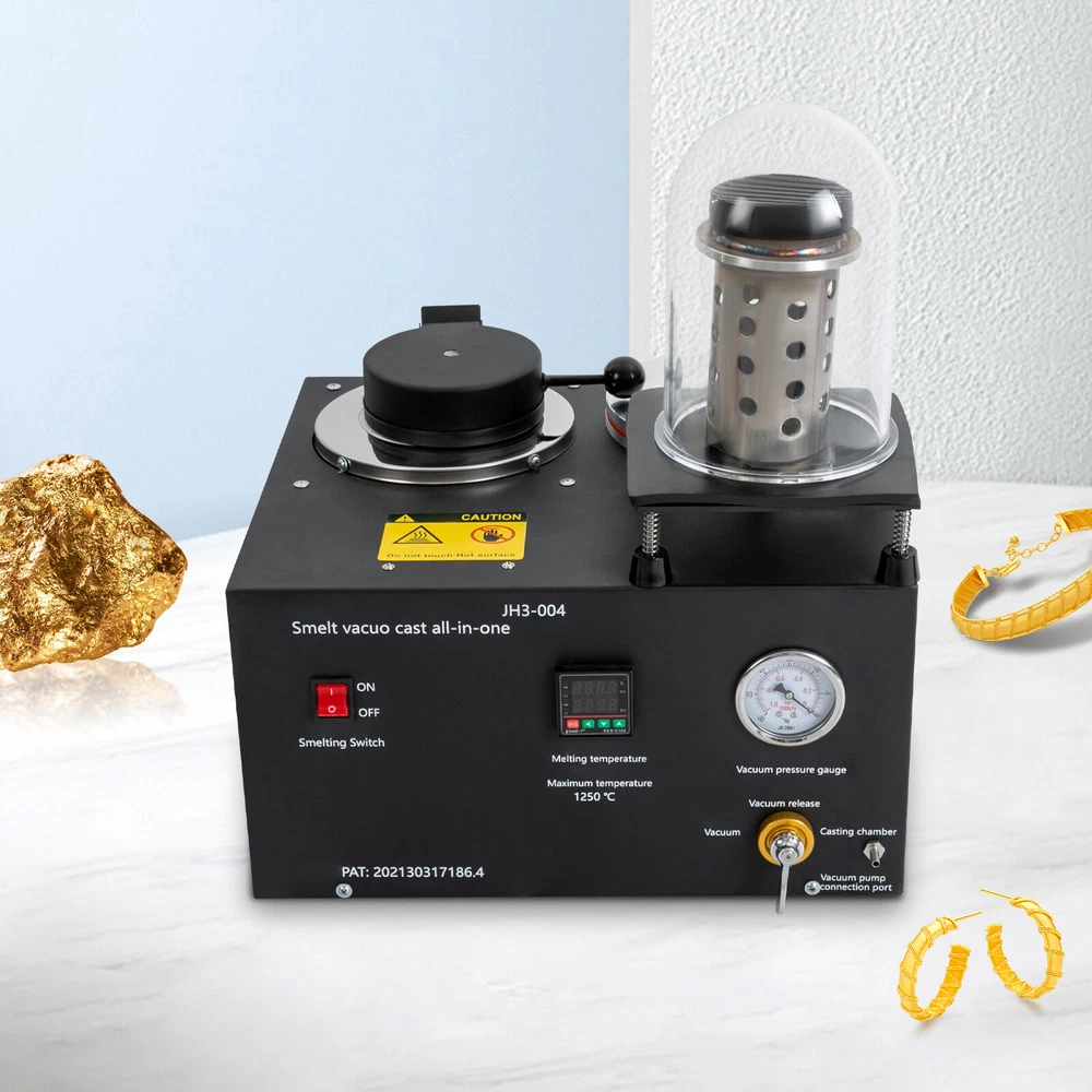 2KG Gold Melting Furnace, 1/2HP Casting Vacuum and Melting Machine Casting Tool Description Designed to pursue excellence in jewelry refining, our state-of-the-art cast vacuum and melting machine represents the embodiment of efficiency and sophistication. With its exquisite craftsmanship, this machine can subtly enhance the jewelry refining process, ensuring that each piece reveals unparalleled purity and brilliance. Key Features Sturdy and Durable: The item is made of cast iron, graphite, plexiglass, and ceramic with a painting treatment, making it sturdy, durable, resistant to deformation, oxidation, corrosion, rust, and high temperature. So it can remain practical and beautiful without frequent replacement. Powerful Function: You pour the melted metal liquid into the burnt plaster mold for vacuum and exhaust, reduce the casting products to produce sand eyes and burrs, increase the smoothness of the surface of the workpiece, and improve the output of the workpiece. Thoughtful Design: A clear vacuum pressure gauge measures and indicates the pressure used by the instrument, an air valve regulator lever controls the air valve for easy vacuuming, and a one-touch on/off switch provides easy access. Rapid Melting: It has an adjustable melting temperature controller (up to 2282°F) to help you melt metal quickly and efficiently. Good Heat Dissipation: The heat dissipation holes on the product can dissipate the heat in time to ensure safety when using it. Space Saving: With its compact size (16.38*14.37*11.65 inches), you can place it nicely on the worktop without taking up too much space. Complete Accessories: It has a complete set of accessories such as gloves, vacuum cover, tong, and power cord, etc. for your convenience! Ideal Gift: Thanks to its practicality and powerful functions, you can give it to your friends as a Christmas, Thanksgiving or housewarming gift. Protective Package: We have used foam wrapping for this product, which is designed to minimize damage to the product during shipping. Details Anti-slip Pads: The pads on the bottom not only have a non-slip effect, but also improve the stability of the product when standing up. Power Port : It allows you to plug in and unplug the power cord safely and smoothly. Clear English Markings: Its operation panel is labeled in English for your convenience. Applications It is suitable for making gold nuggets, ingots or jewelry, smelting recycling scrap, refining jewelry, casting all kinds of fast-melting metals, including gold, silver, lead, copper, brass, bronze, aluminum, etc. Specifications Material: Cast Iron + Graphite + Plexiglass + Ceramic Process: Painting Color: Black Model: JH3-004 Power Source: Electric Corded Mounting Type: Freestanding Assembly Required: Yes Plug: US Standard Voltage: 110V CFM: 3 Hp: 1/2 Capacity: 2L/0.53Gal Max. Melting Temperature: 1250°C/2282°F Product Size: 41.6*36.5*29.6cm/16.38*14.37*11.65 in Packing Size: 50*48*45cm/19.69*18.9*17.72 in Gross Weight: 21kg/46.3lbs Net Weight: 19kg/41.89lbs Package Included 1* Cast Vacuum and Melting Machine 1* Copper Bell 1* Power Cord 1* Crucible 1* Tong 1* Rubber Ring 1 Pair* Gloves 1* Chinese and English Manual Other Parts Required for Use Notes Please note that the machine should not be operated for more than 60 minutes to avoid overheating and damage. Please note that this product does not include a vacuum pump Please read the English manual carefully before use and pay particular attention to the safety instructions contained therein. Please allow the slight color difference caused by the shooting light and 1-3 cm error due to manual measurement, and make sure you do not mind before ordering. Payment Delivery details Terms of sales About us Contact us Payment We accept ebay payment 。 Fees such as import duties, taxes are not included in the item price or shipping costs. These charges are the buyer's responsibility. Delivery details Shipping: 2-9 working days to: USA Terms of sales We maintain high standards of excellence and strive for hundred percent customer satisfaction. Feedback is very important to us. We hope that you contact us immediately before you give neutral or negative feedback, so that we can address your concerns. It is impossible to address issues if we do not know about them! About us Your satis faction is our ultimate goal. We work hard to earn your trust and future business. Our certified technicians have tested each item before shipping. The unit comes with 1 year limited warranty on all manufacturing defects. a) If you receive a defective item, you may return it or ask for a discount. Please contact us within 14 days after you receive the package. b) What you returned must be intact and in its original packaging as re? u. Customer is responsible for shipping costs of the returned item. c) We will cover the cost of shipping back t with the shipping rate indicated in the registration page. We will send you a new unit or refund the full payment you paid. Thank you. Contact us Business Hour Business Hour: Monday To Friday: 8:30 AM to 5:00 PM (Beijing China time) Due to time zones, our reply to your questions may not be immediately. But within above working time, we will reply your email within 24 hours. If it's non-workdays, please kindly be patient and wait till Monday. Please contact us with ebay message. Please feel free to contact us if you have any questions. Monday To Friday: 8:30 AM to 5:00 PM (Beijing China time) Due to time zones, our reply to your questions may not be immediately. But within above working time, we will reply your email within 24 hours. If it's non-workdays, please kindly be patient and wait till Monday. Please contact us with ebay message. Please feel free to contact us if you have any questions. Brand Unbranded MPN N/A UPC Does Not Apply EAN Does Not Apply Type Machine