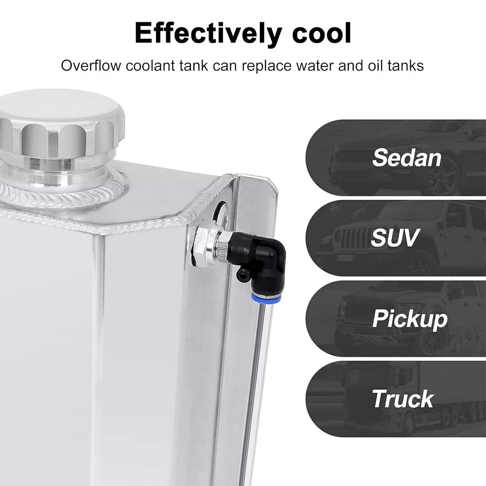 Feature: Capacity:2L Barb inlet and outlet ports:2*12 mm Thread size:M14*1.5 Size:144mm/5.67inchx85mm/3.34inchx260mm/10.24inch Package: Coolant Overflow Tank * 1 Hollow Nut & Pneumatic Connector *2 Hose Connector *2 Aluminium Cap *1 2L Coolant Radiator Overflow Tank +Baffled Oil Catch Can with Breather Filter Product Description MULTIPLE USES Used as oil catch can Prevent carbon and sludge build-up in the intake system and the engine, keep engine clean and prolongs its life. Used as coolant overflow tank Coolant overflow tank is basically a remote reservoir for the radiator. Switchable inlet/outlet and level indicator can be placed either on the right or left hand side of the can. Universal coolant reservoir overflow tank, suitable for most vehicles. The water tank is compatible with Mitsubishi, compatible with Nissan, compatible with Mazda, compatible with Jeep, compatible with Dodge, compatible with Ford, compatible with Acura, compatible with Infiniti, compatible with Lexus, compatible with Sion, compatible with GM and other vehicles. PRODUCT DETAILS Fully Tig Welded Keep a good sealing environment and better prevent coolant leakage. Aluminum alloy body High temperature and corrosion resistance, longer service life, better than plastic materials. Hose Fitting with O-ring Three raised edges can effectively prevent the hose from slipping off. Liquid level indicator with O-ring Fluid levels can be easily checked without opening the bottle cap. Washable cap with O-ring The cap is knurled for easy opening and closing. Bottom drain valve with 0-ring Magnetic drain plug at the bottom of the car expansion tank for easy draining and cleaning. PRODUCT PARAMETERS Payment Delivery details Terms of sales About us Contact us Payment 1.We only accept PayPal. PayPal is the only online payment method we accept. Please make sure you have a valid/confirmed PayPal account prior bidding. 2.All Paypal Payments must be Confirmed. Payment must be made within 48hrs of the auction end time. Non-Paying bidders will be reported. 3.When you get your package,maybe you will pay some charges, it's taxes for local customs,not pay to us, and the fees are depends on the customs, all buyer are same. Delivery details 1.Items will be shipped within 2 business days after payment is received. 2.We ship to your eBay address. Please make sure your eBay address is correct. Buyer takes responsibility if eBay address is wrong. 3.Import duties, taxes and charges are not included in the item price or shipping charges. Please check with your country customs office for these additional charges. 4.We shipping using UPS or USPS from our nearest warehouse to you. Tracking numbers will be emailed upon shipment. Terms of sales 1.Please feel free to email us if you have any question. 2.We appreciate you contact us via eBay message when you are not satisfied rather than open case or leave negative feedback directly. We'll try our best to solve the issue. 3.Refund will be issued once we receive your returned items. Buyer is responsible for all return shipping charges. 4.Please contact us for return process before you return the item. 5.All items for exchange or refund must be returned in "as new" condition. About us We are the responsible seller ,always provide high-quality products and best service .If you have any questions, please contact us, and will try our best to help you. Please contact us by eBay Message, and we will reply you within 24 hours. Thank you very much! Contact us We are the professional auto parts manufacturer , and provide line lock, AN hose end fittings , fuel line , fuel filter , fuel regulator , exhaust cutout , exhaust tips , exhaust muffler and so on .The quality of the product to be secured. If you have any questions or any needs , please contact us , and will try our best to help you.